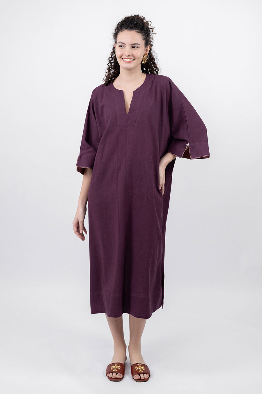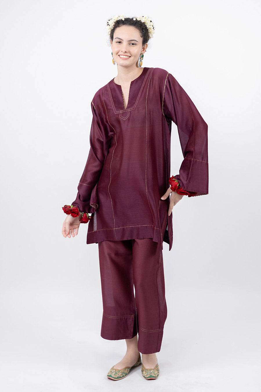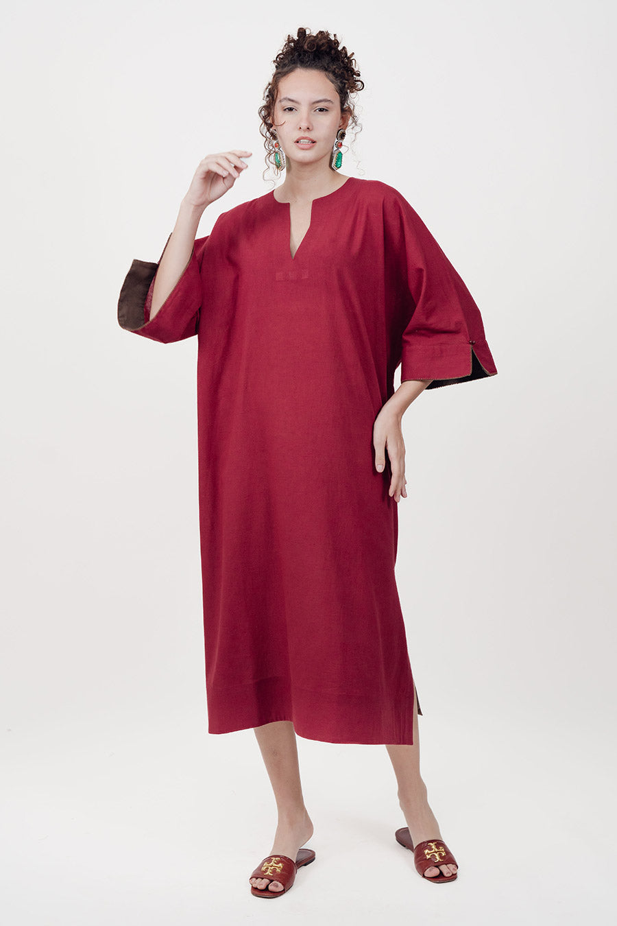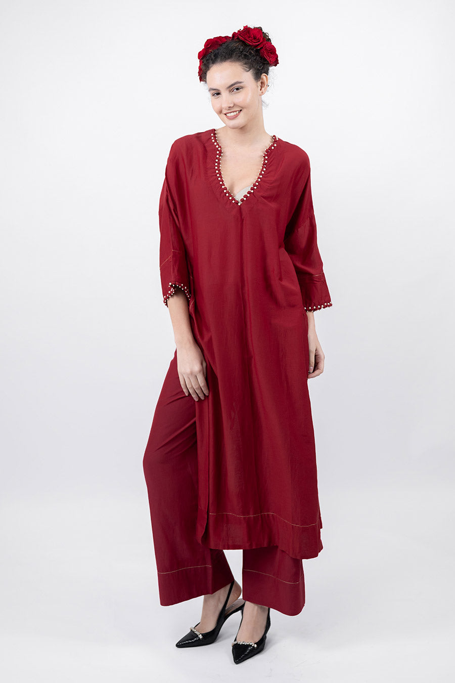 Sitaara Maroon Cotton Silk Kaftan Co-Ord Set