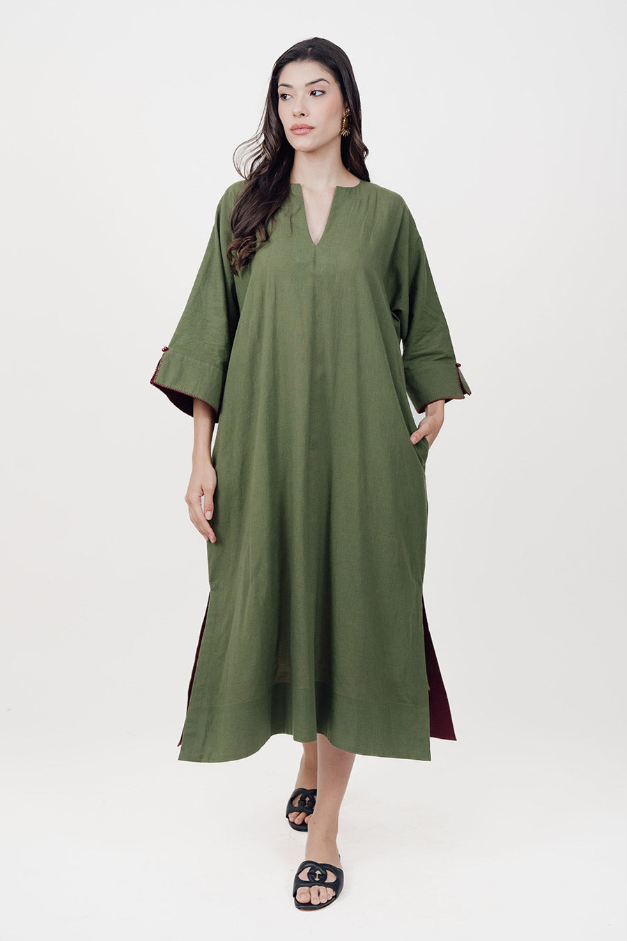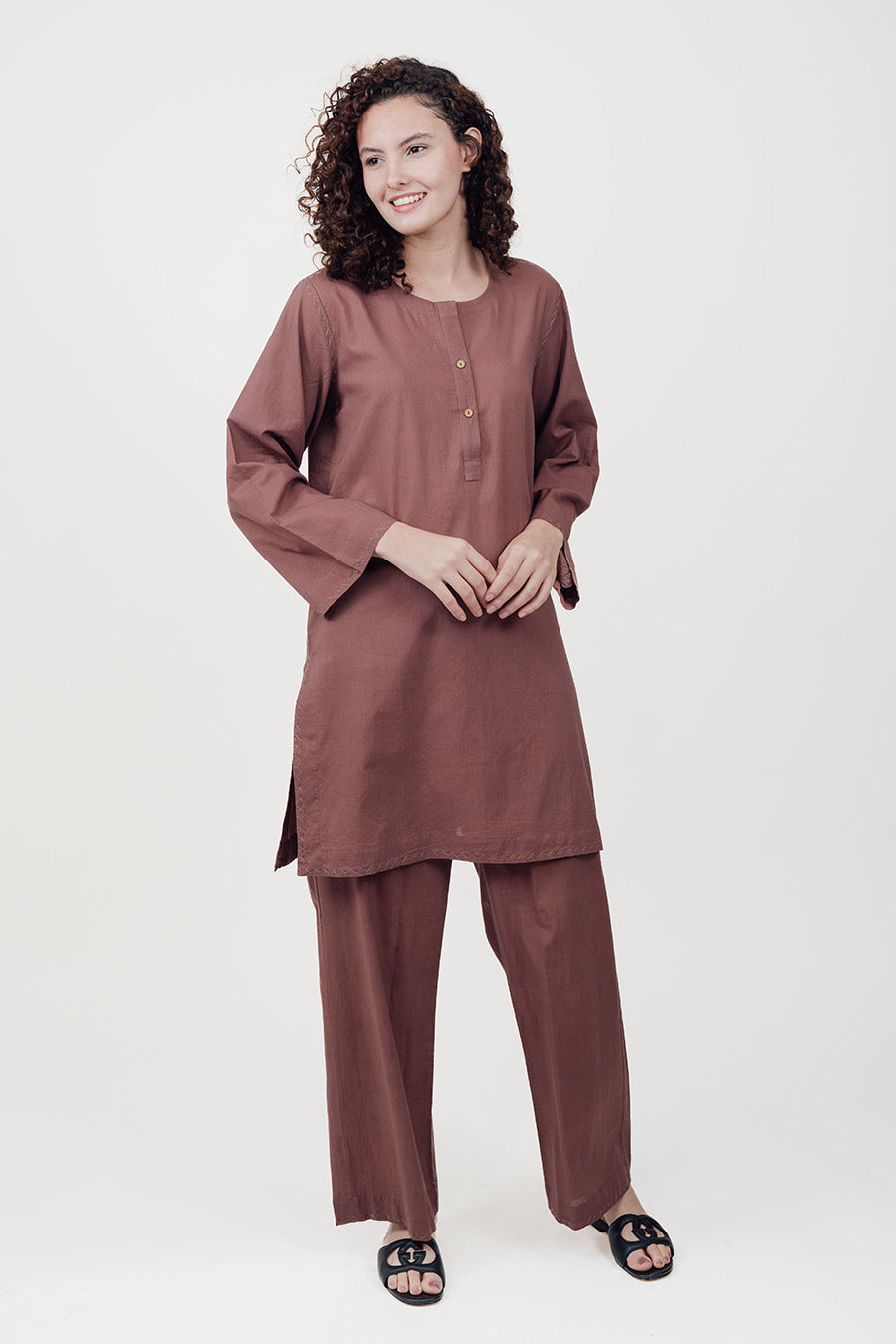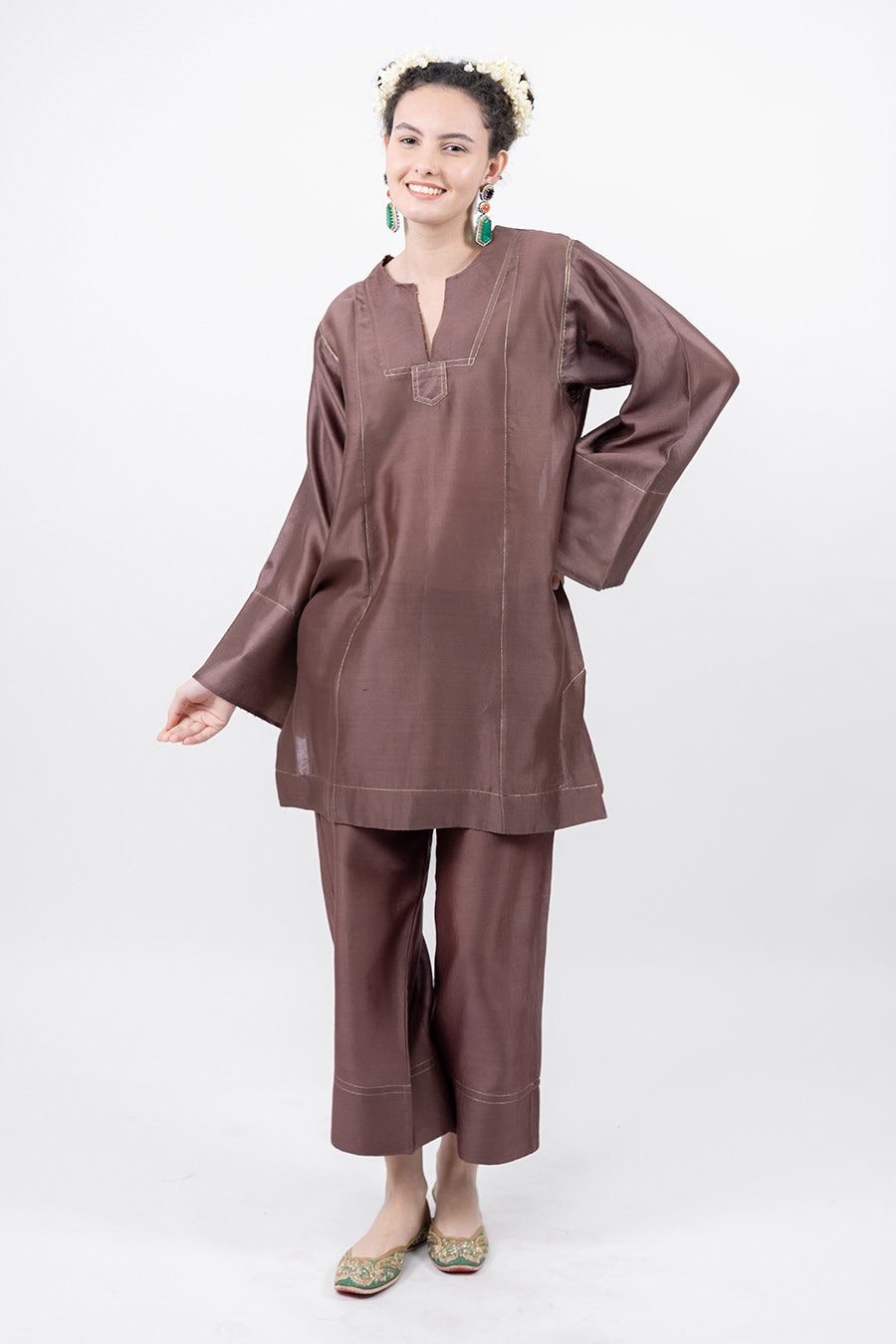 Sitaara Maroon Cotton Silk Kaftan Co-Ord Set