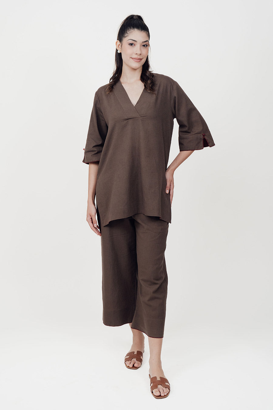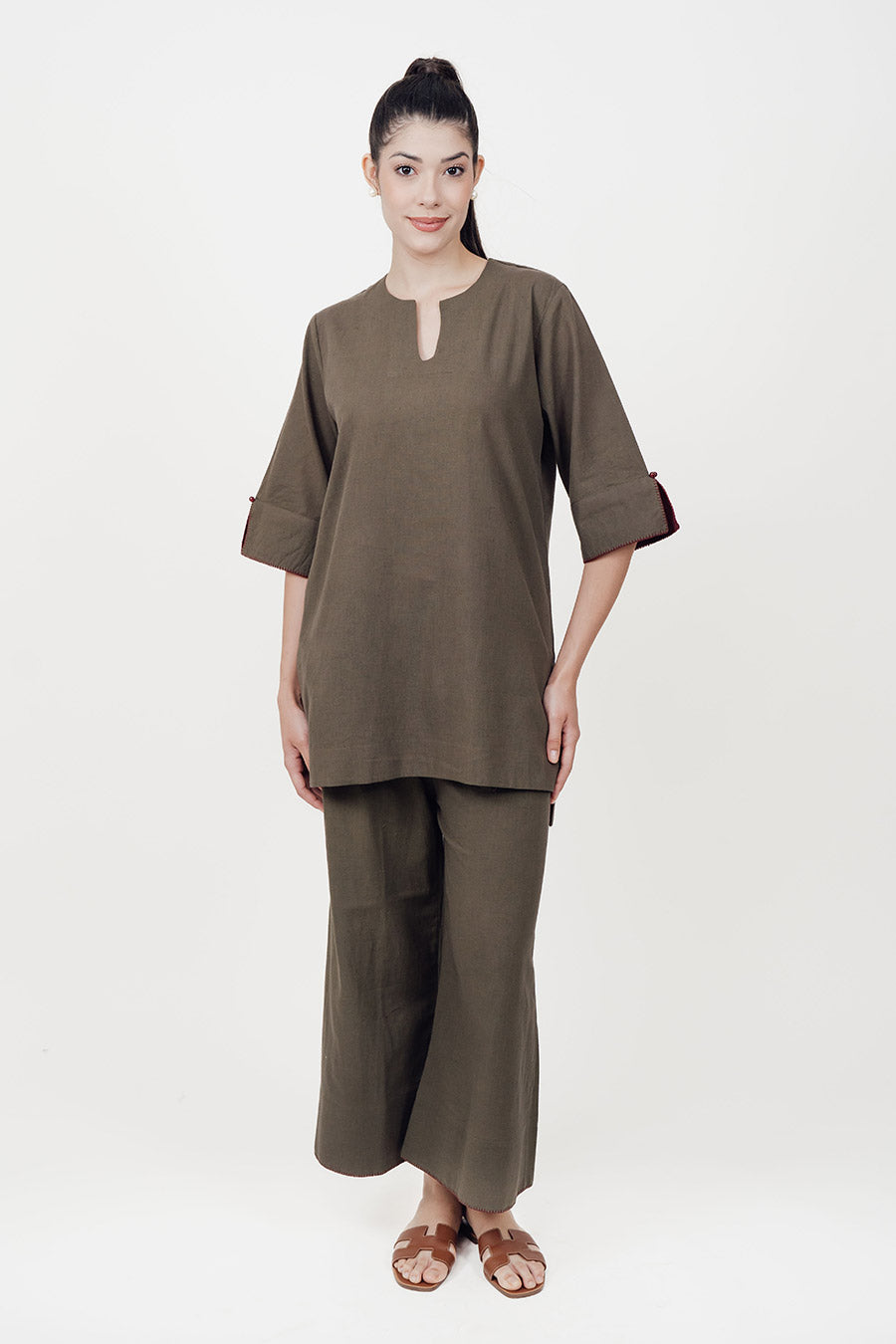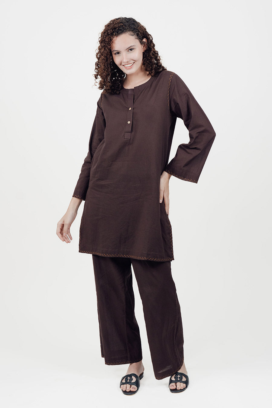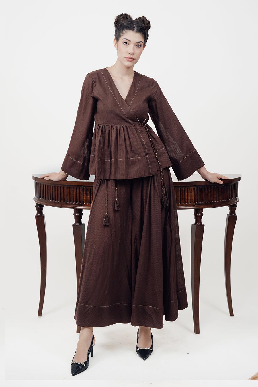 Sitaara Maroon Cotton Silk Kaftan Co-Ord Set
