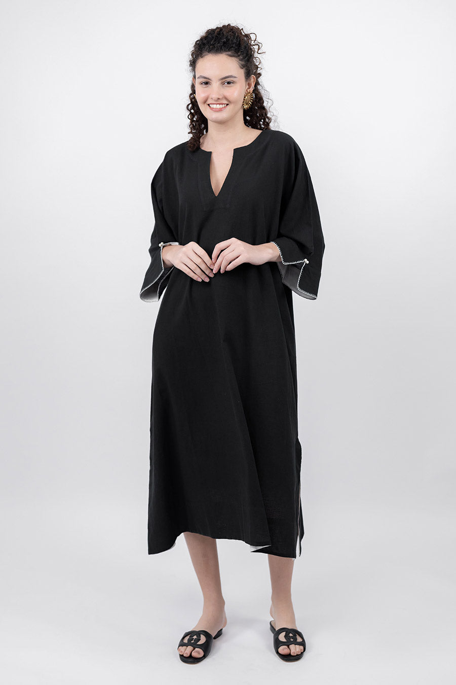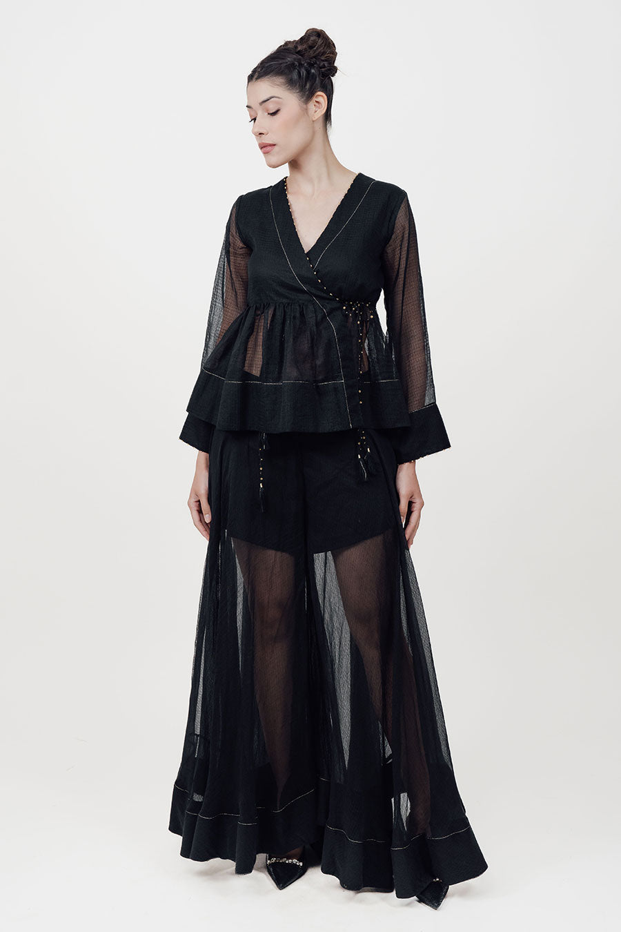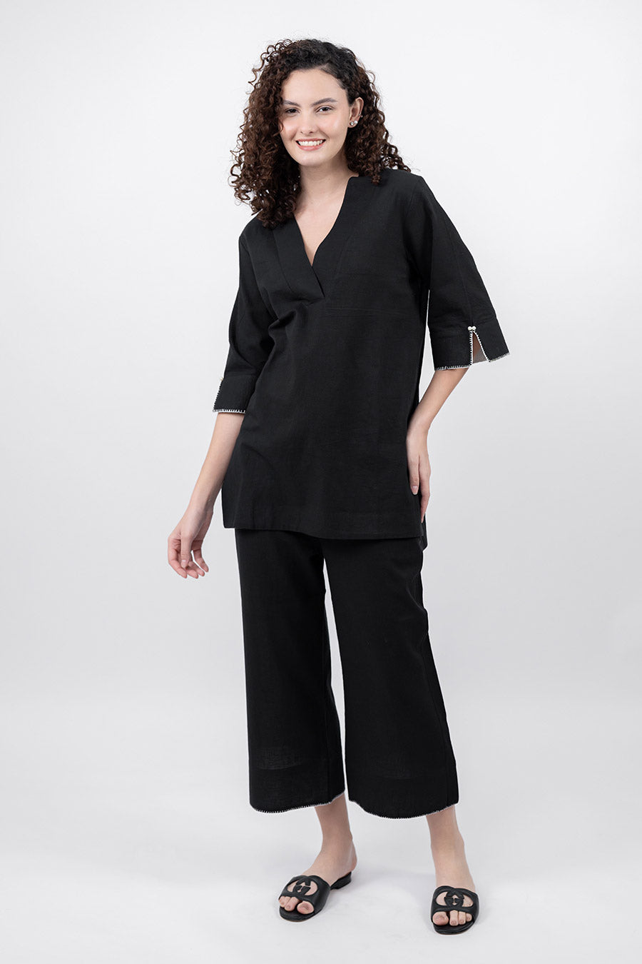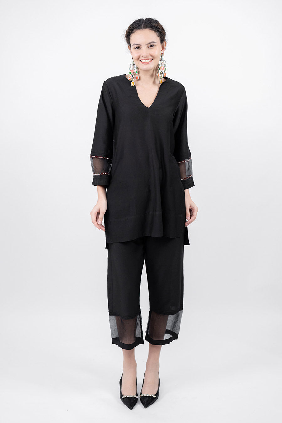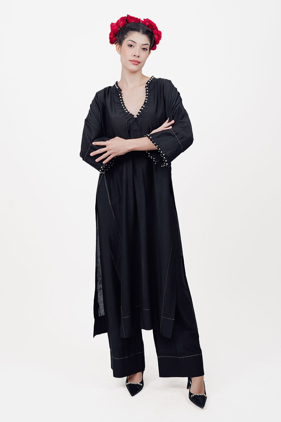 Sitaara Black Cotton Silk Kaftan Co-Ord Set