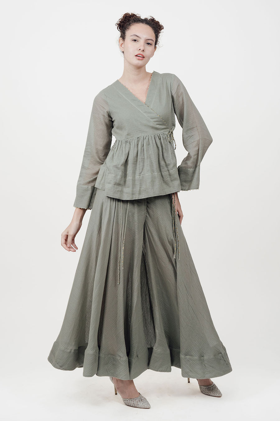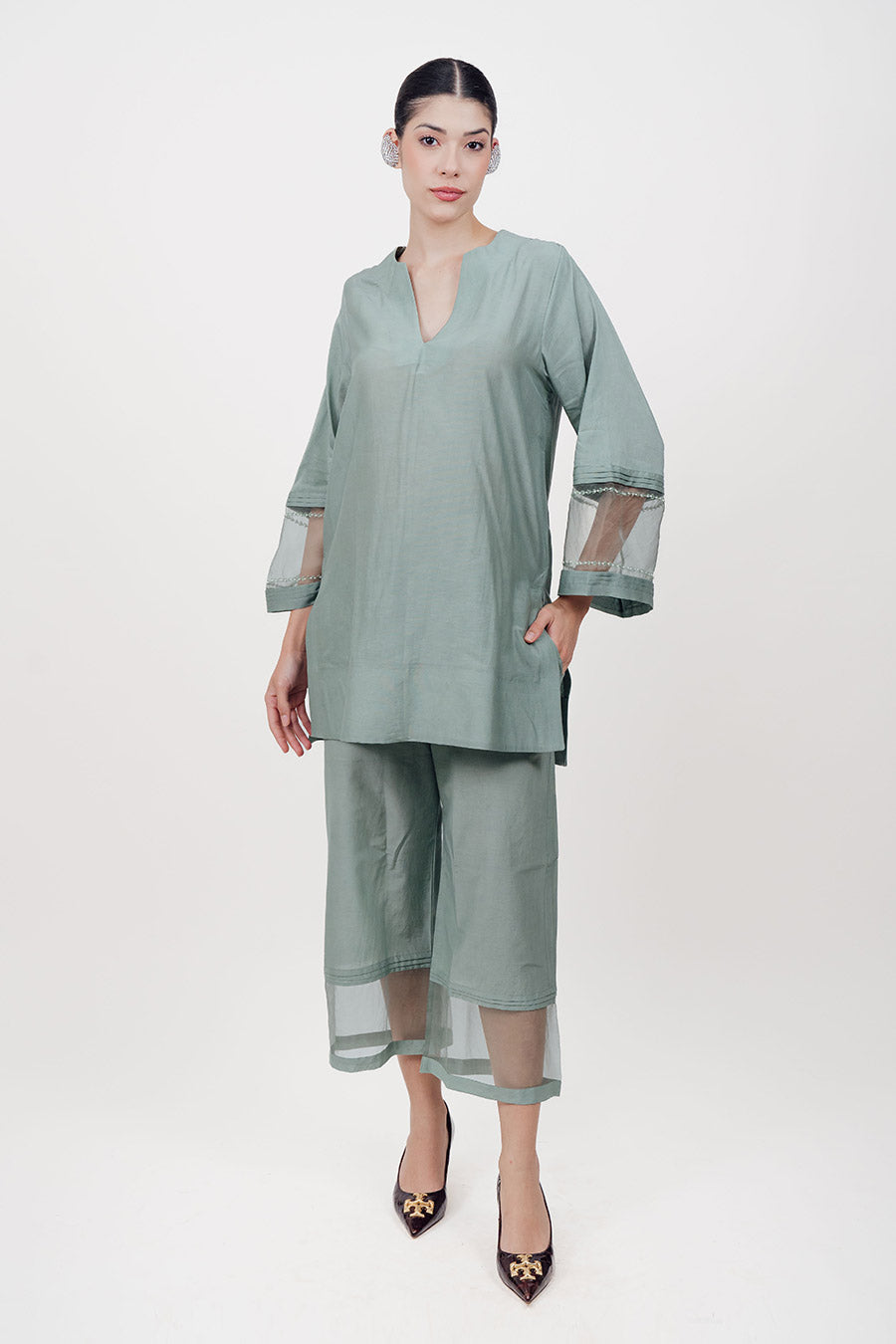 Virasat Green Cotton Silk Embroidered Co-Ord Set