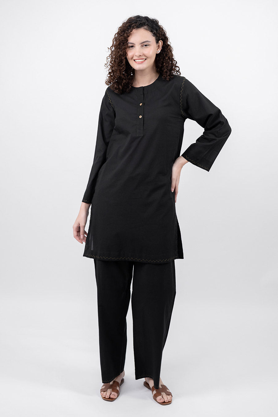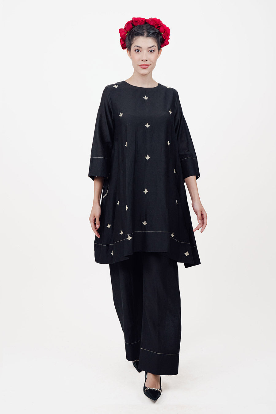 Taara Black Cotton Silk Embroidered Co-Ord Set