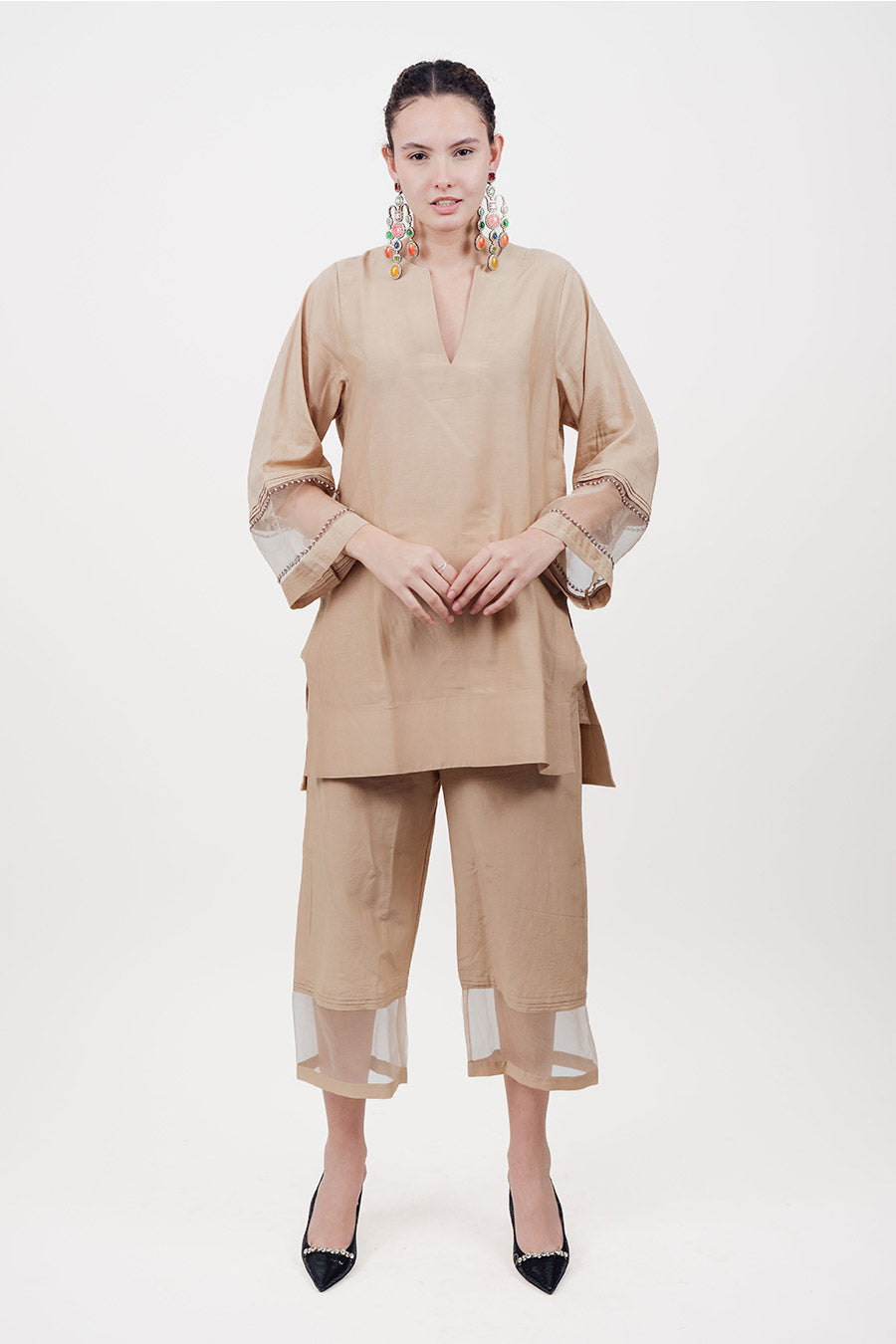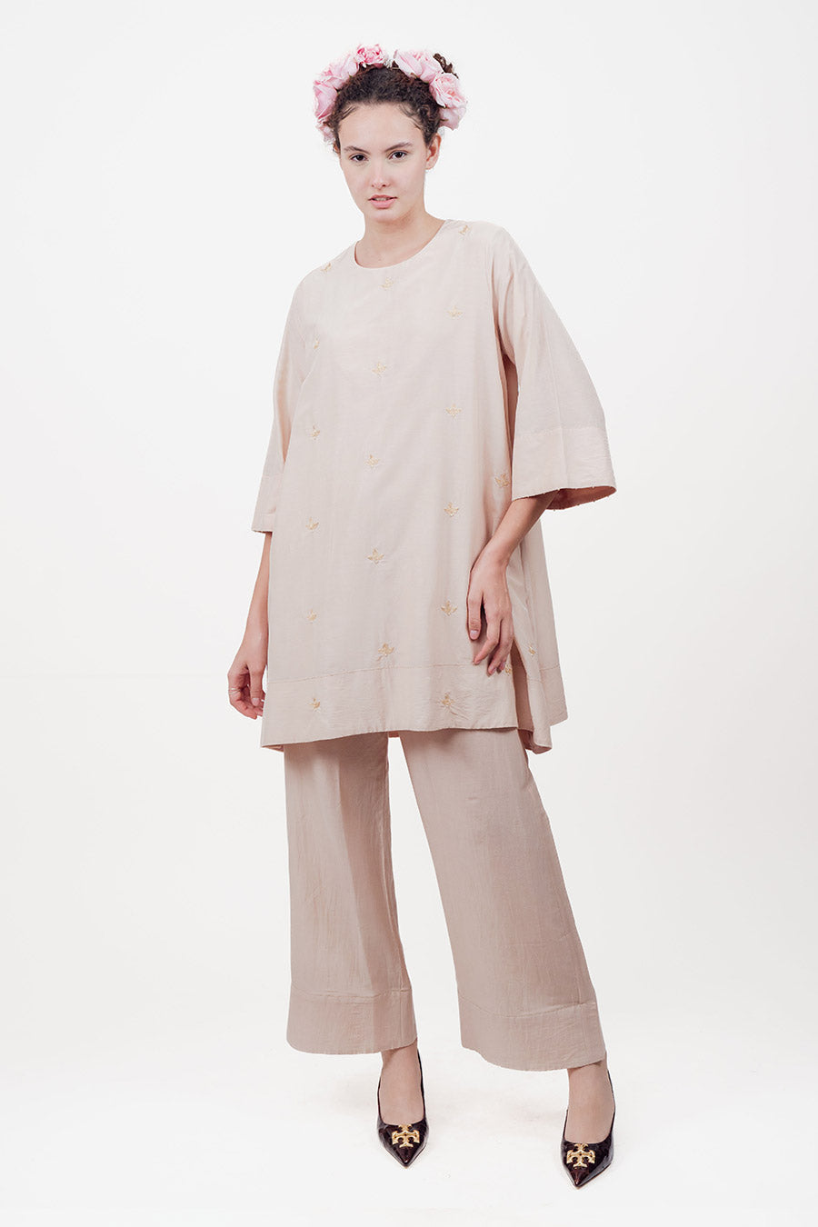 Virasat Beige Cotton Silk Embroidered Co-Ord Set