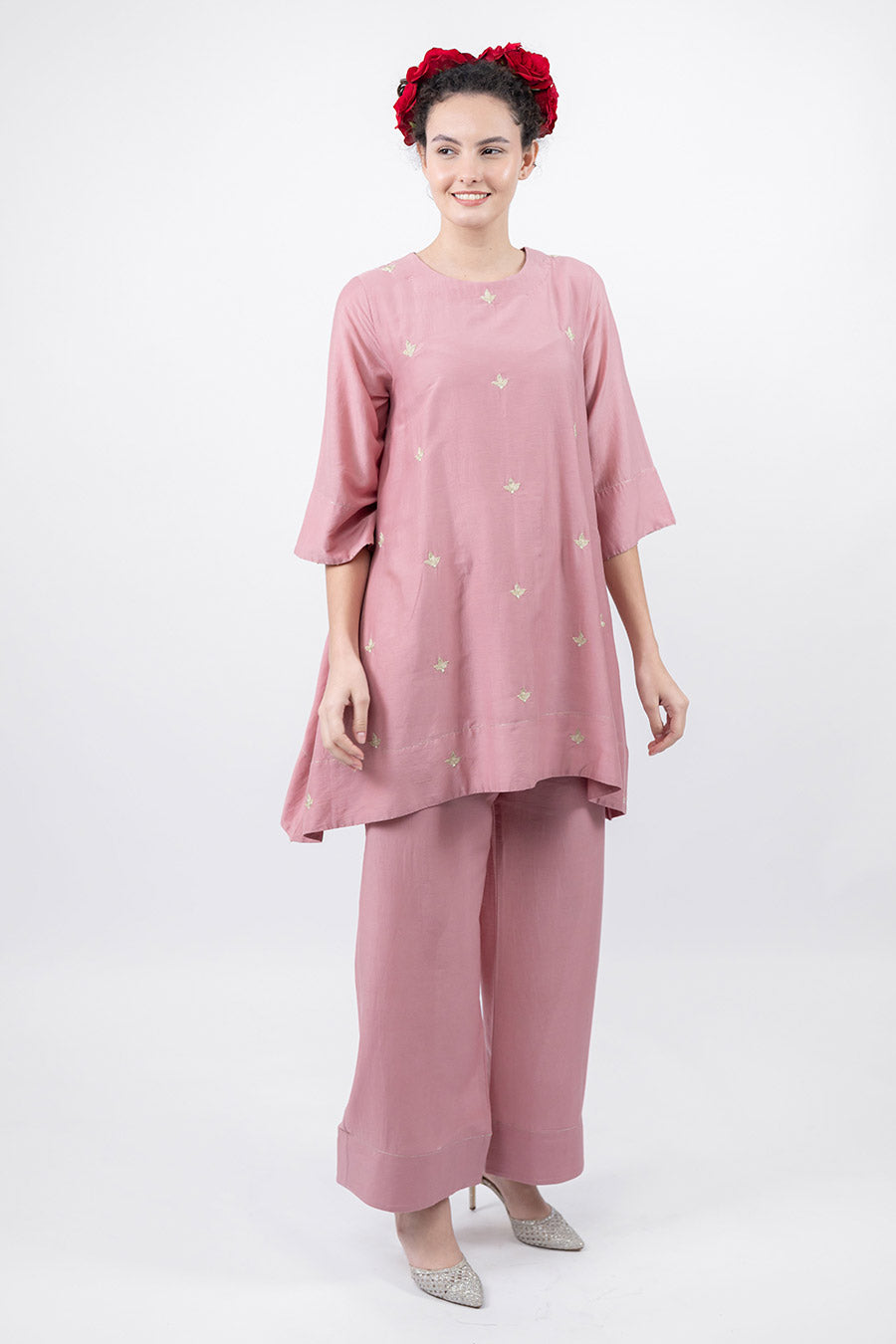 Taara Rose Pink Cotton Silk Embroidered Co-Ord Set