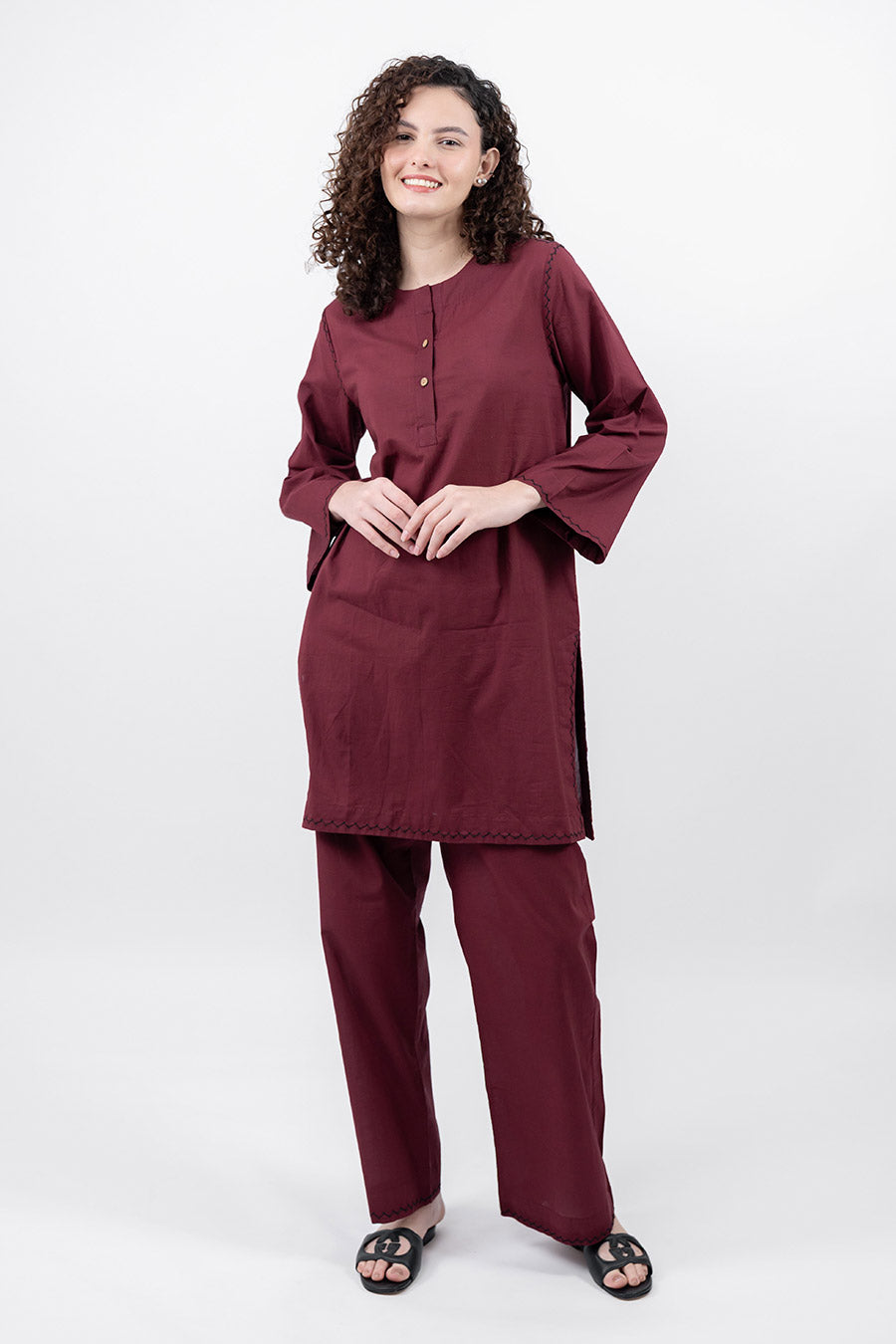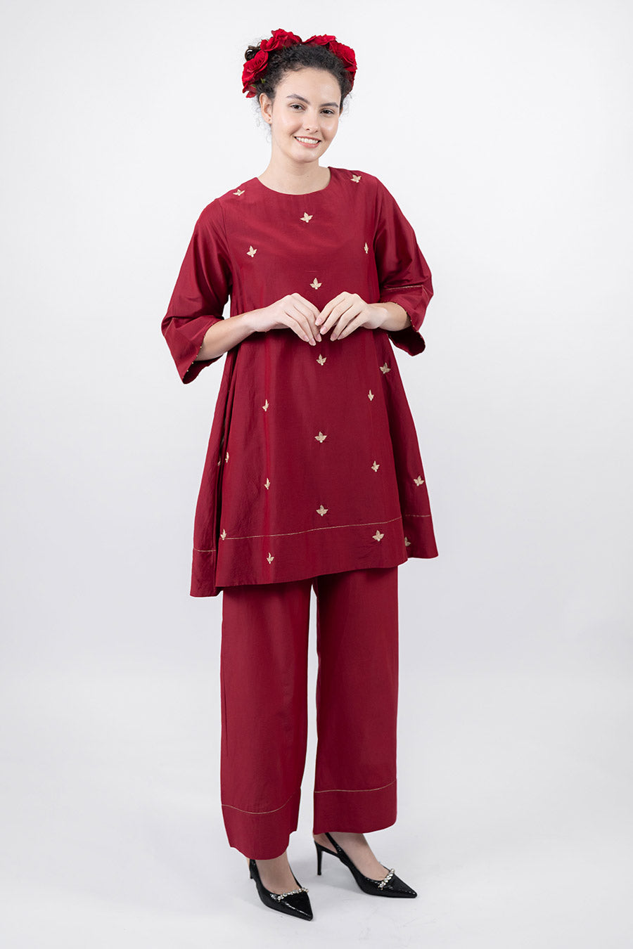 Taara Maroon Cotton Silk Embroidered Co-Ord Set
