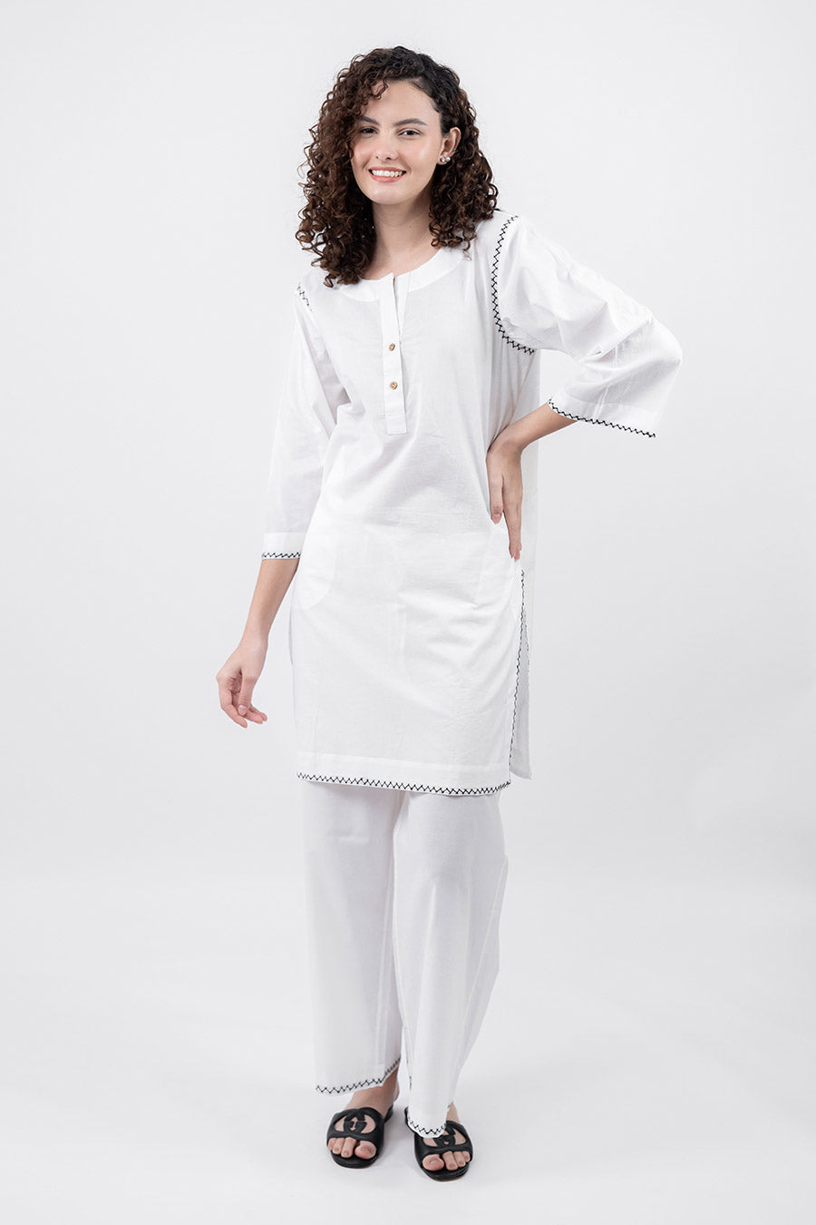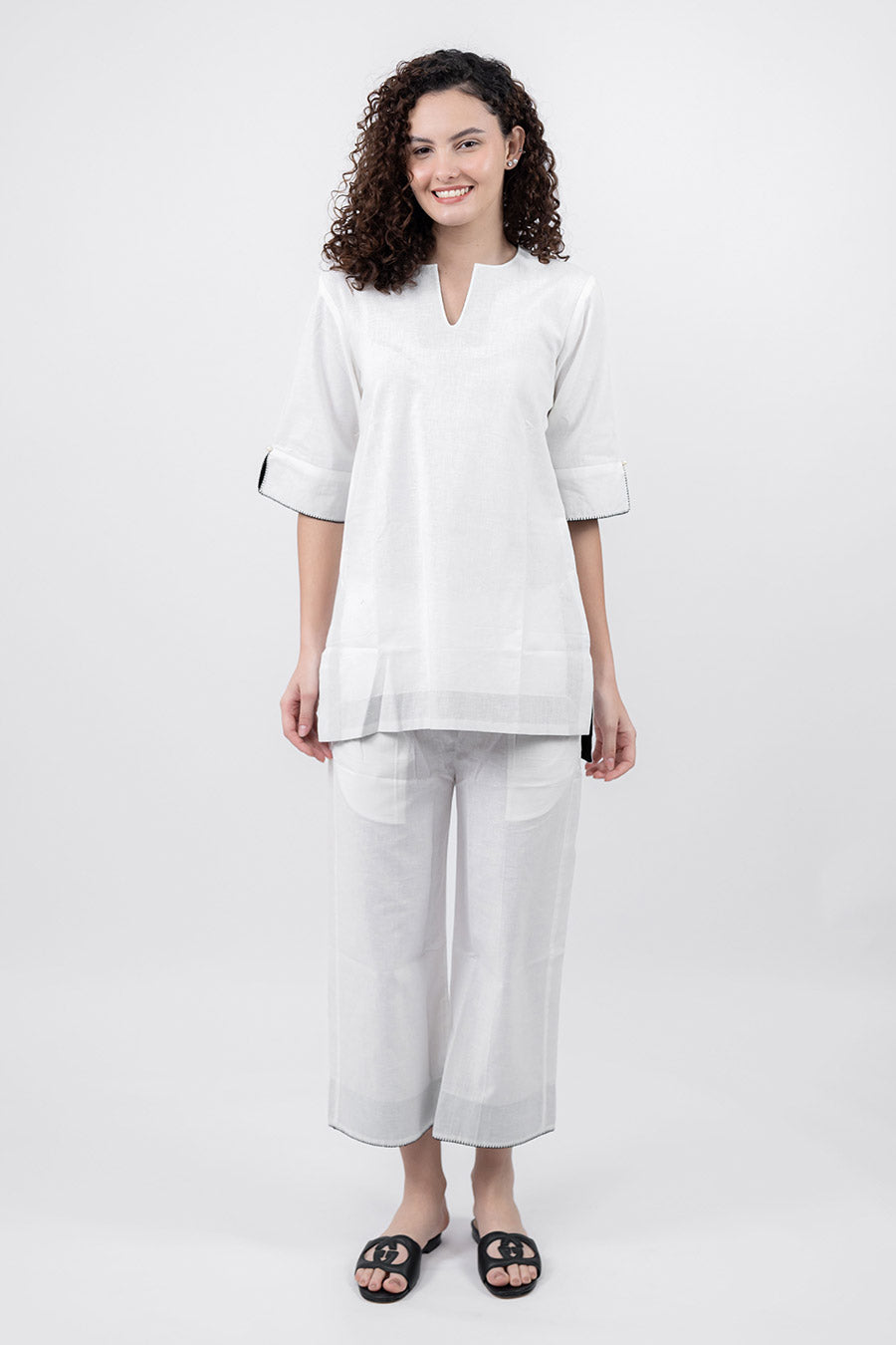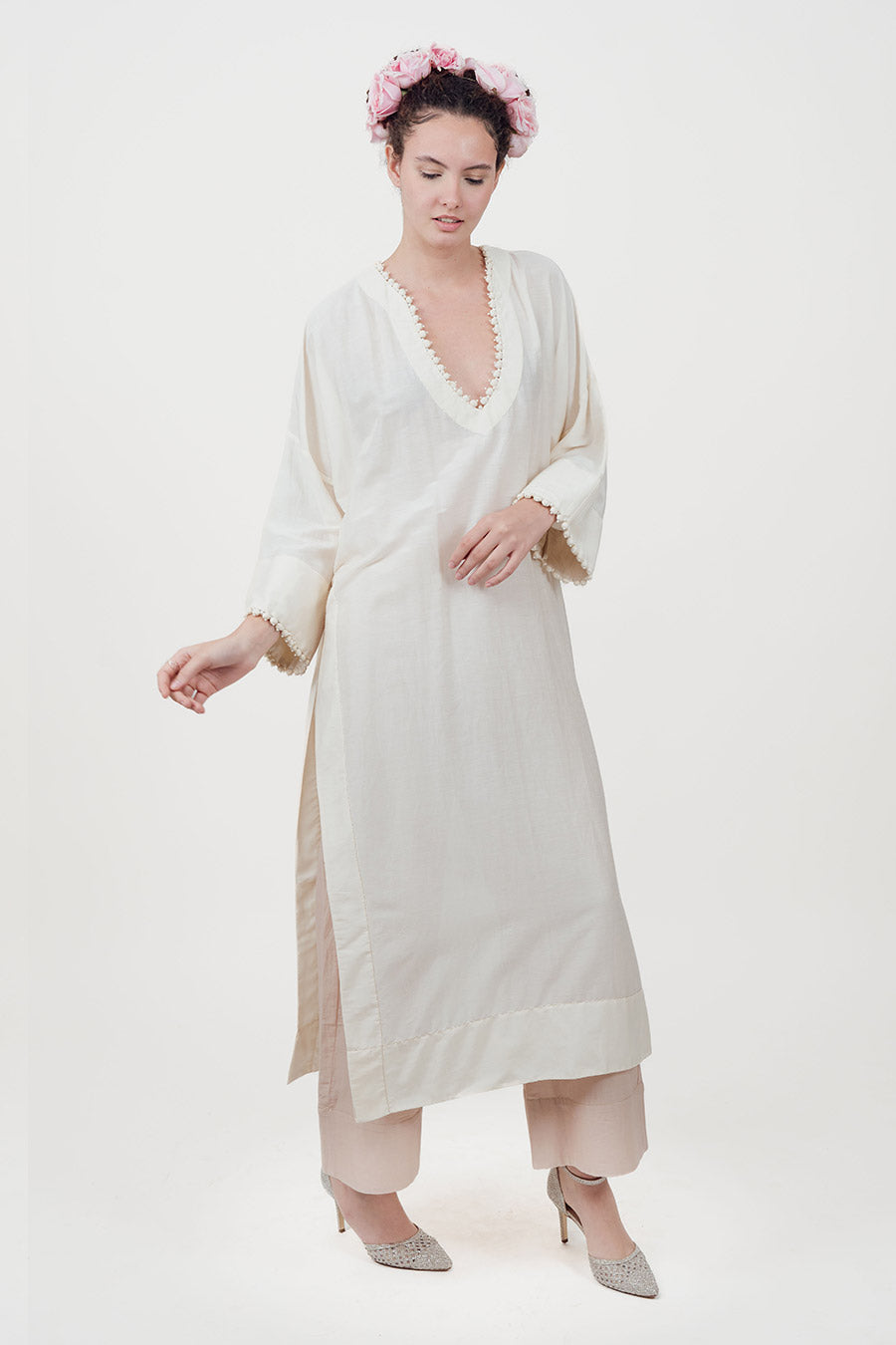 Sitaara Ivory Cotton Silk Kaftan Co-Ord Set