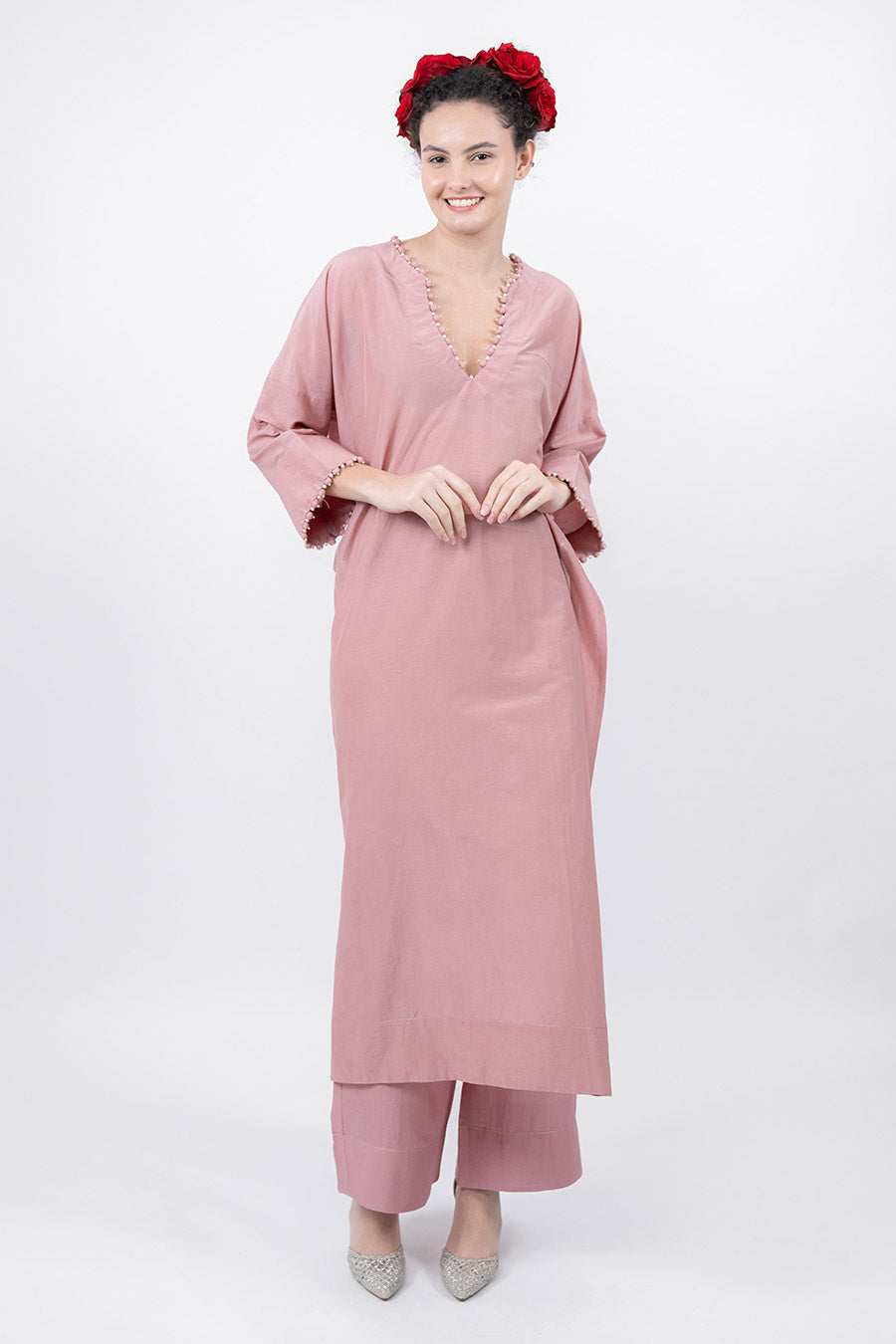 Sitaara Rose Cotton Silk Kaftan Co-Ord Set