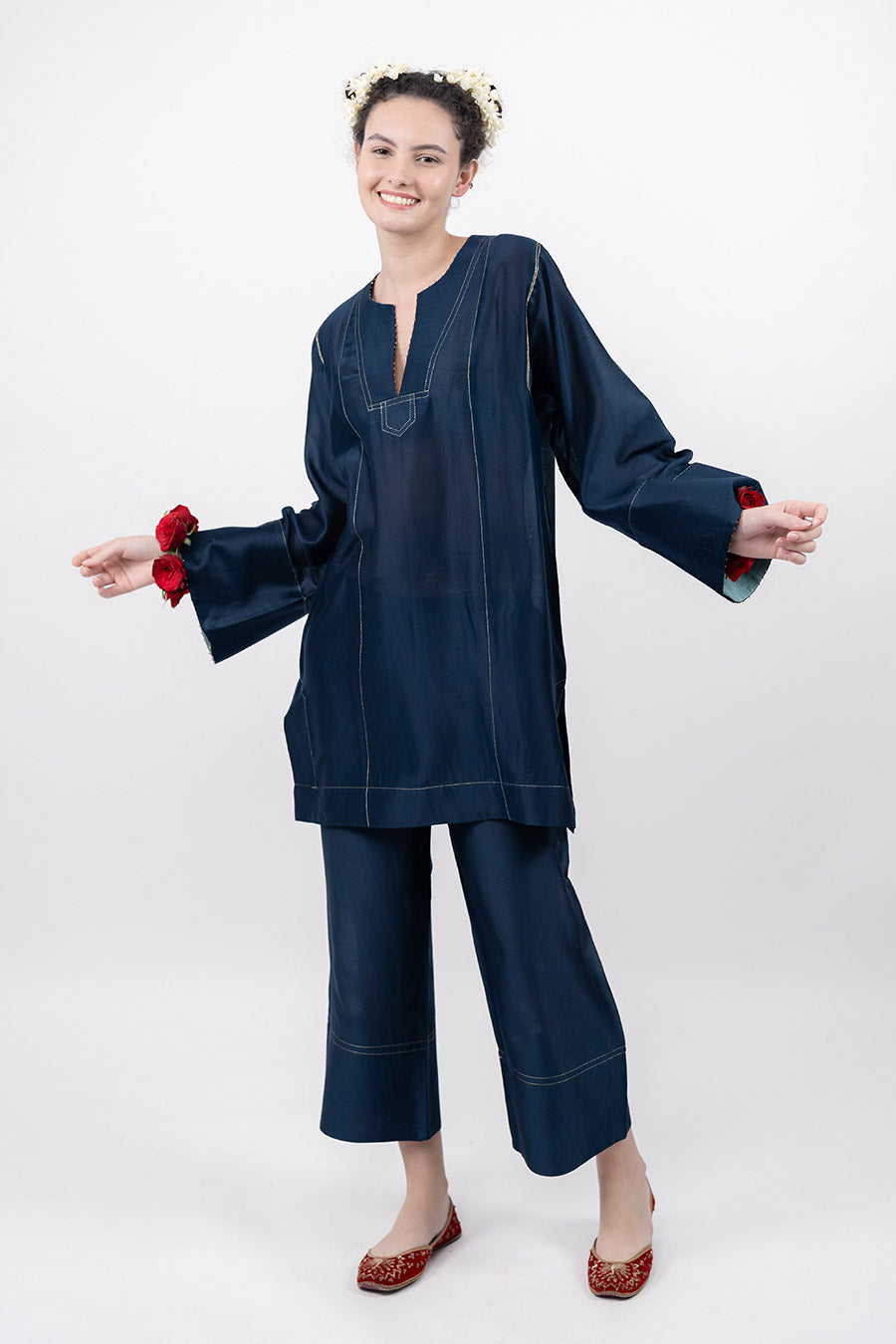 Virasat Blue Cotton Silk Embroidered Co-Ord Set