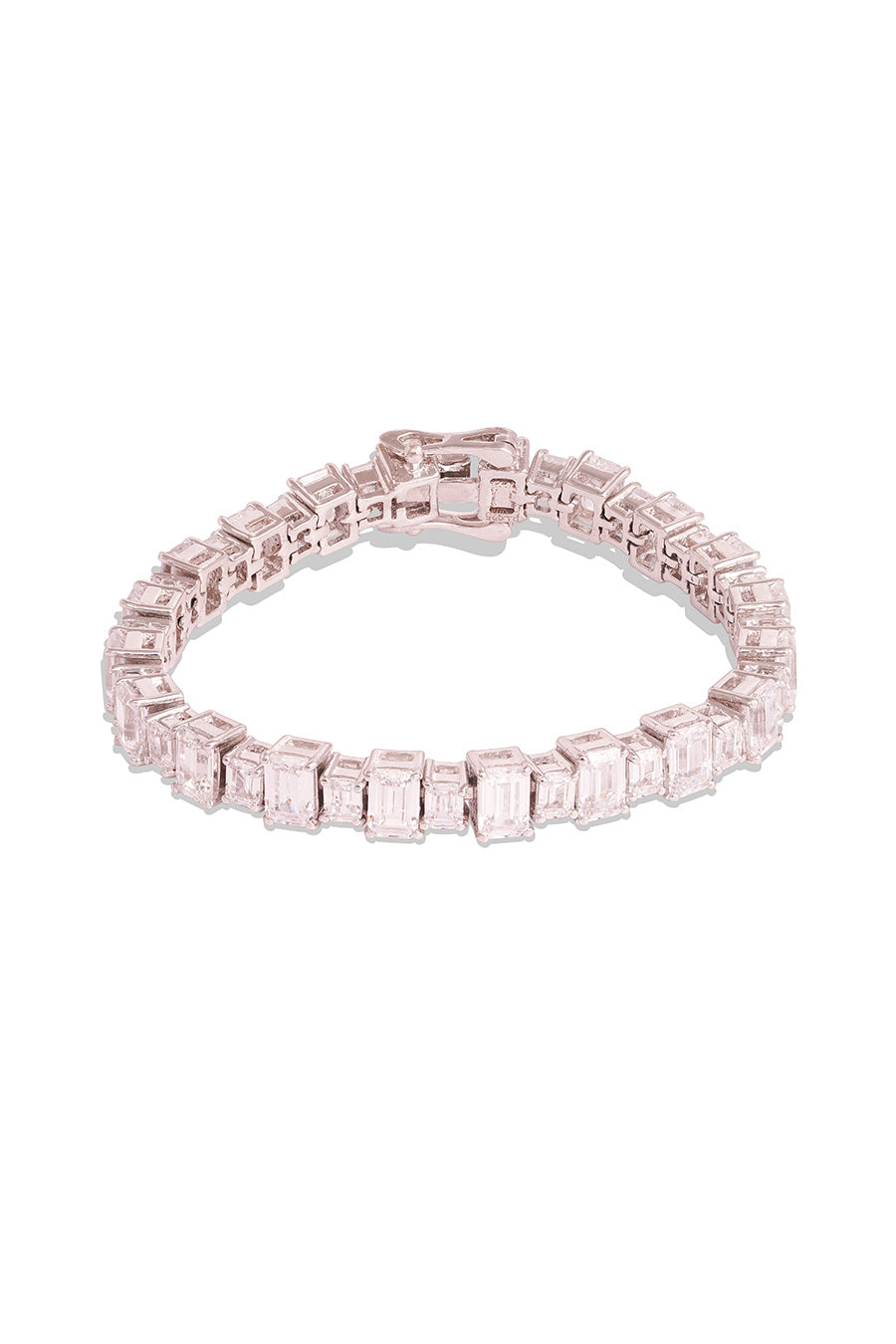 92.5 Sterling Silver Emerald-Cut Tennis Bracelet