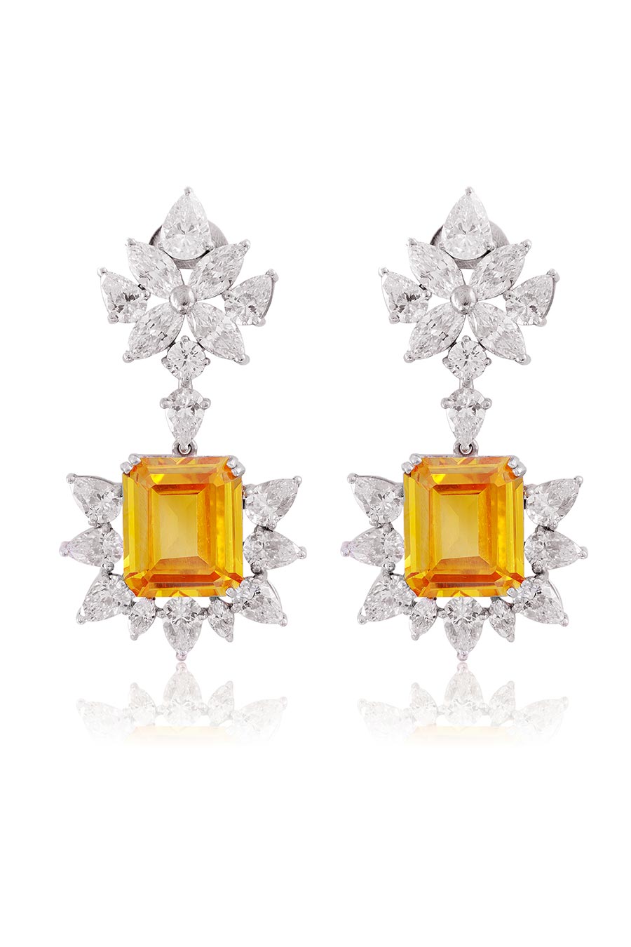 92.5 Sterling Silver Dahlia Yellow Pear Drop Earrings