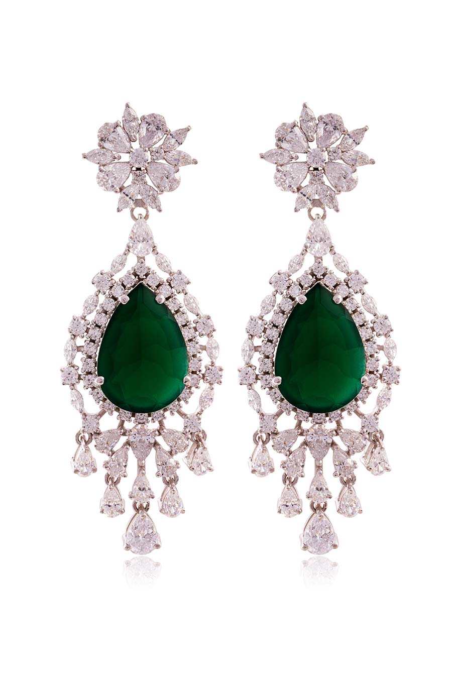 92.5 Sterling Silver Dahlia Green Pear Drop Earrings