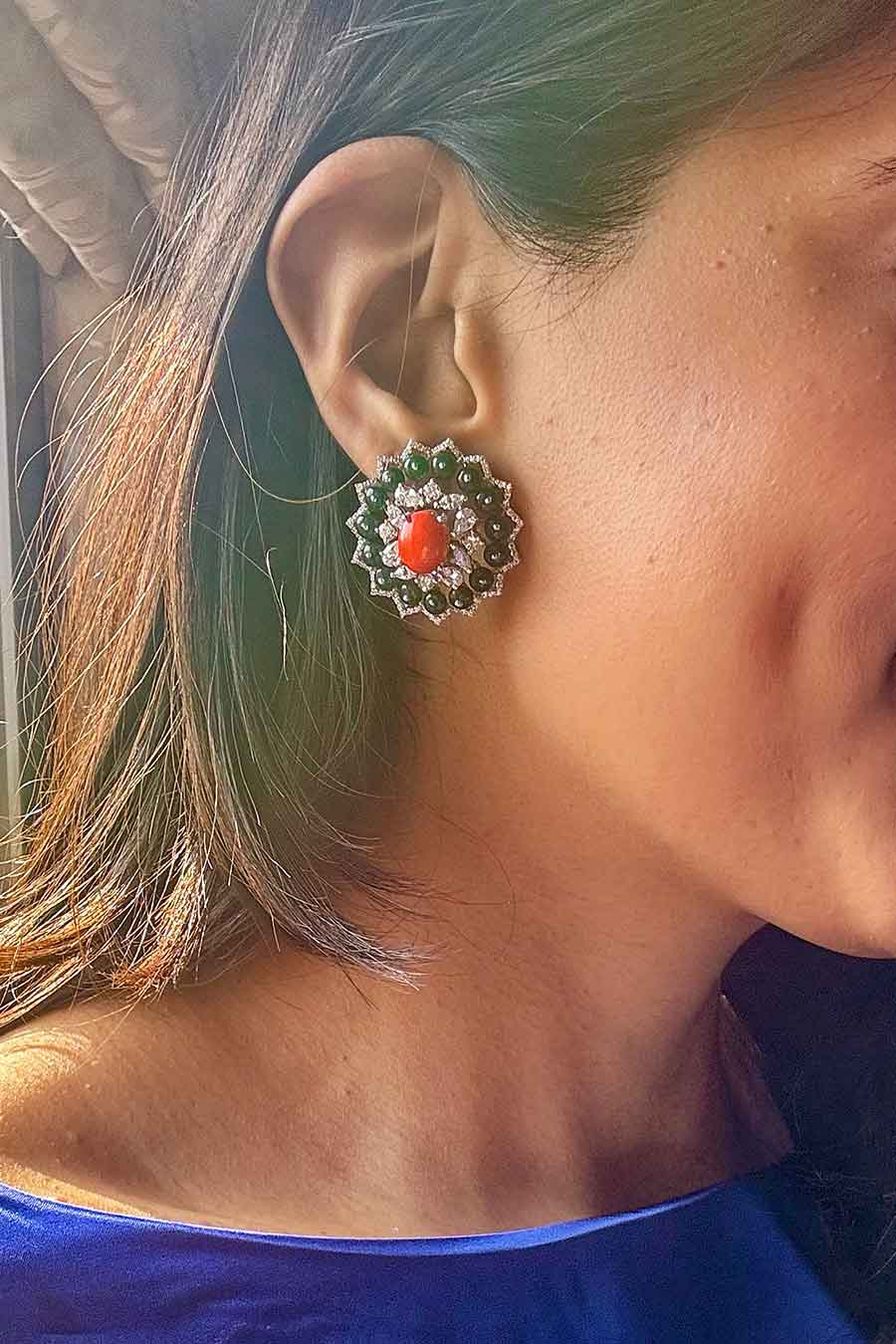 92.5 Sterling Silver Camellia Mixed Stud Earrings
