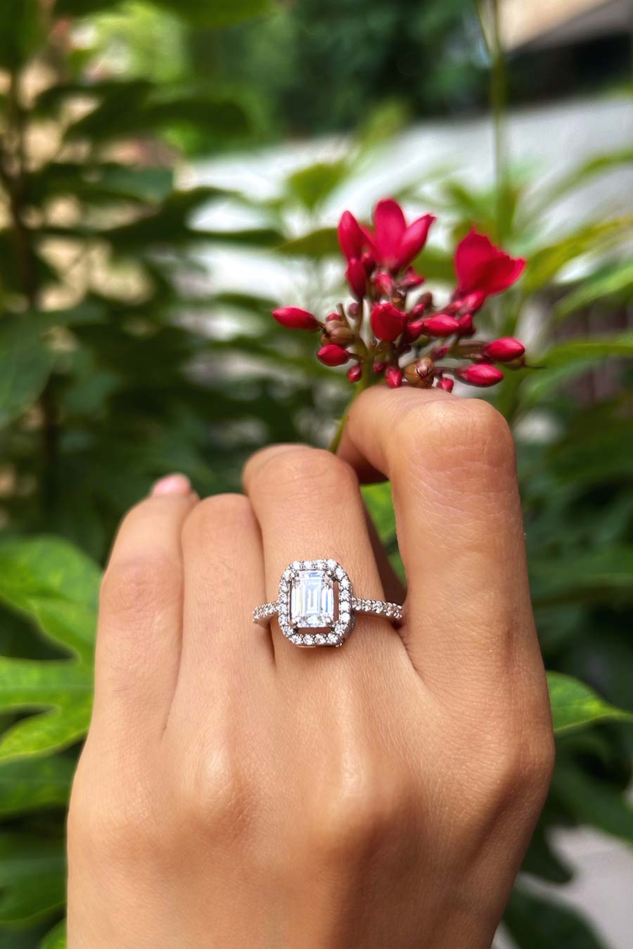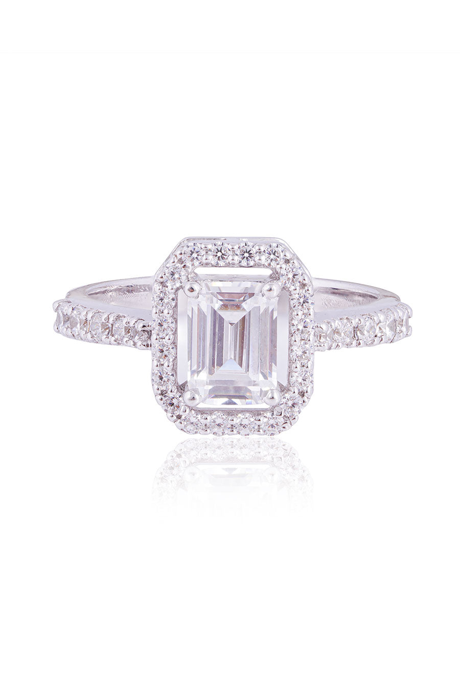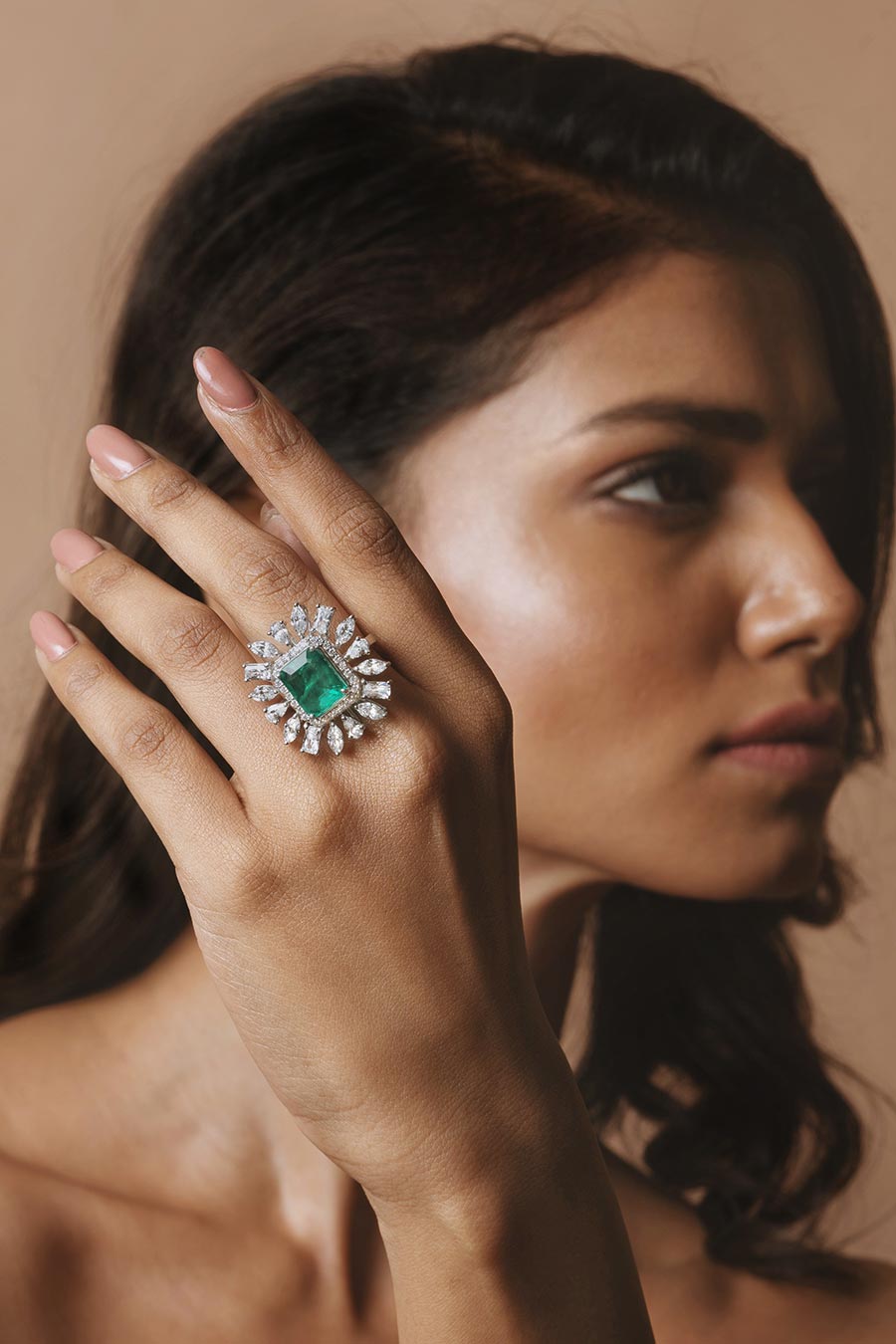 92.5 Sterling Silver Emerald Halo Solitaire Ring