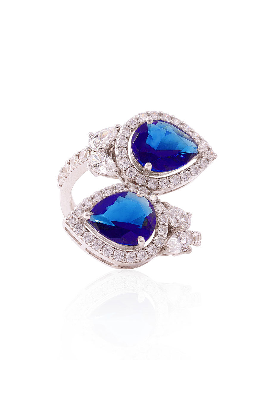 92.5 Sterling Silver Dahlia Blue Pear Drop Earrings