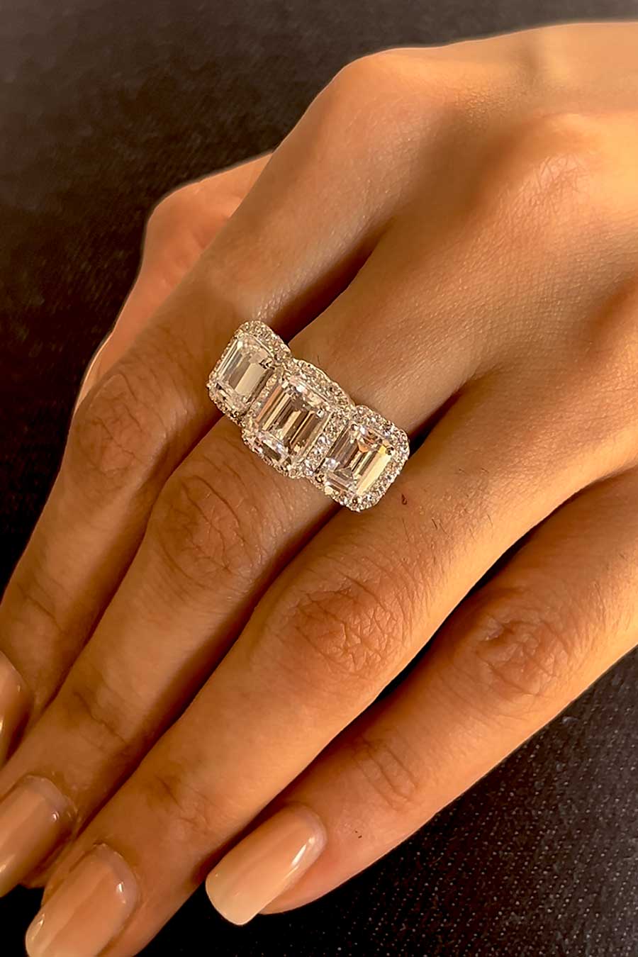 92.5 Sterling Silver Emerald Half Eternity Band Ring