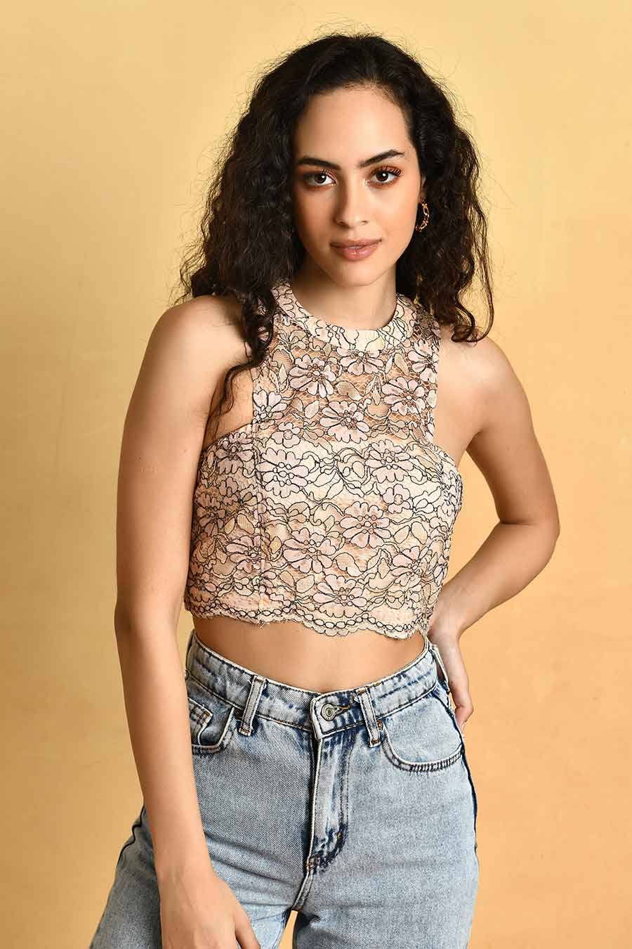 Beige Mehr Applique Top & Pant Co-Ord Set