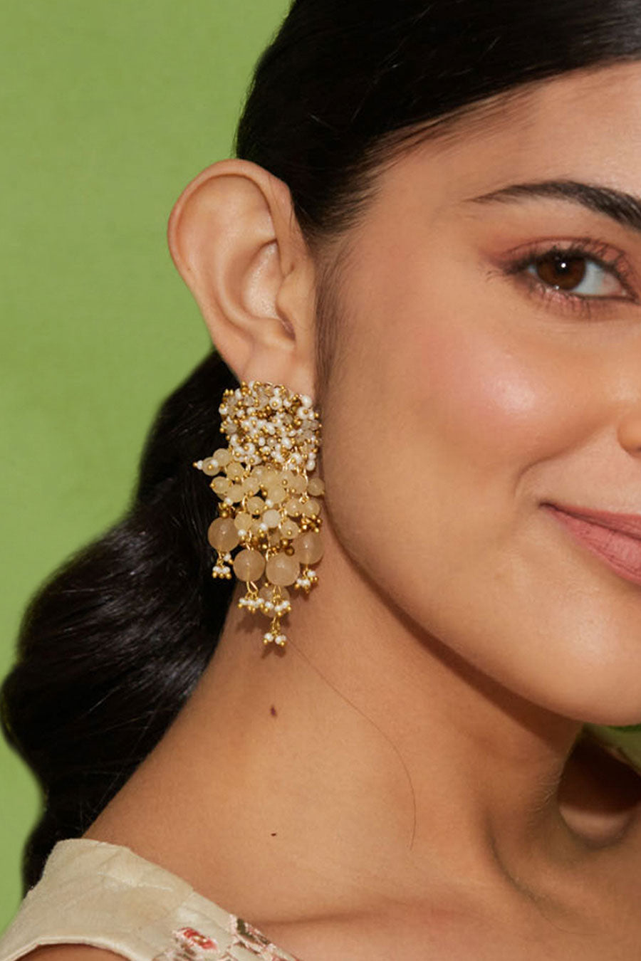 Beige Patchwork Embellished 3-Piece Sharara Set