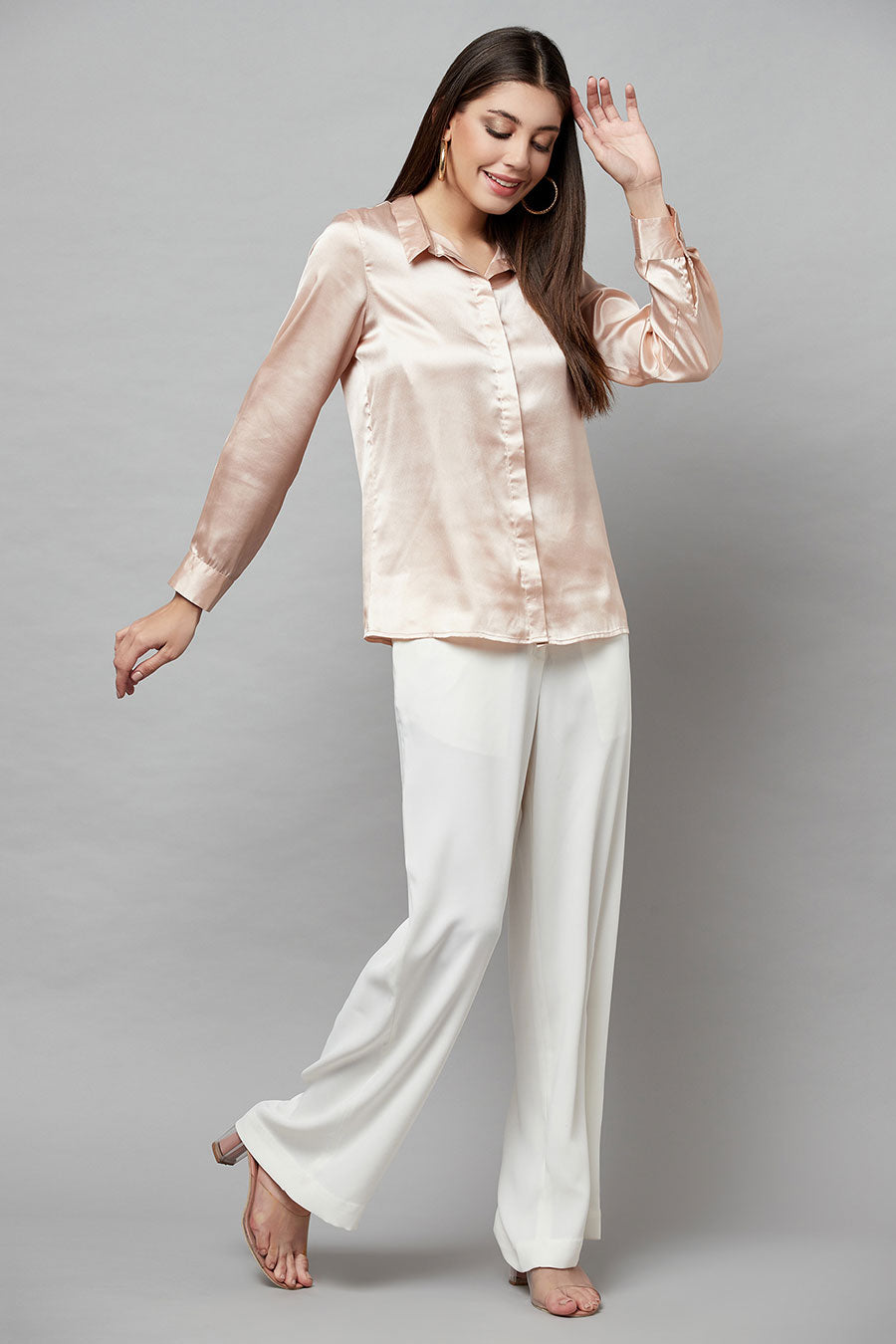 Beige Shin Linen Silk Bustier, Coat & Pant Co-Ord Set