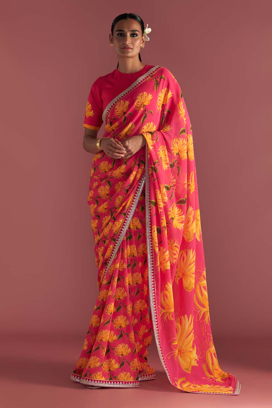 Berry Pink Mist Embroidered Saree & Blouse Piece