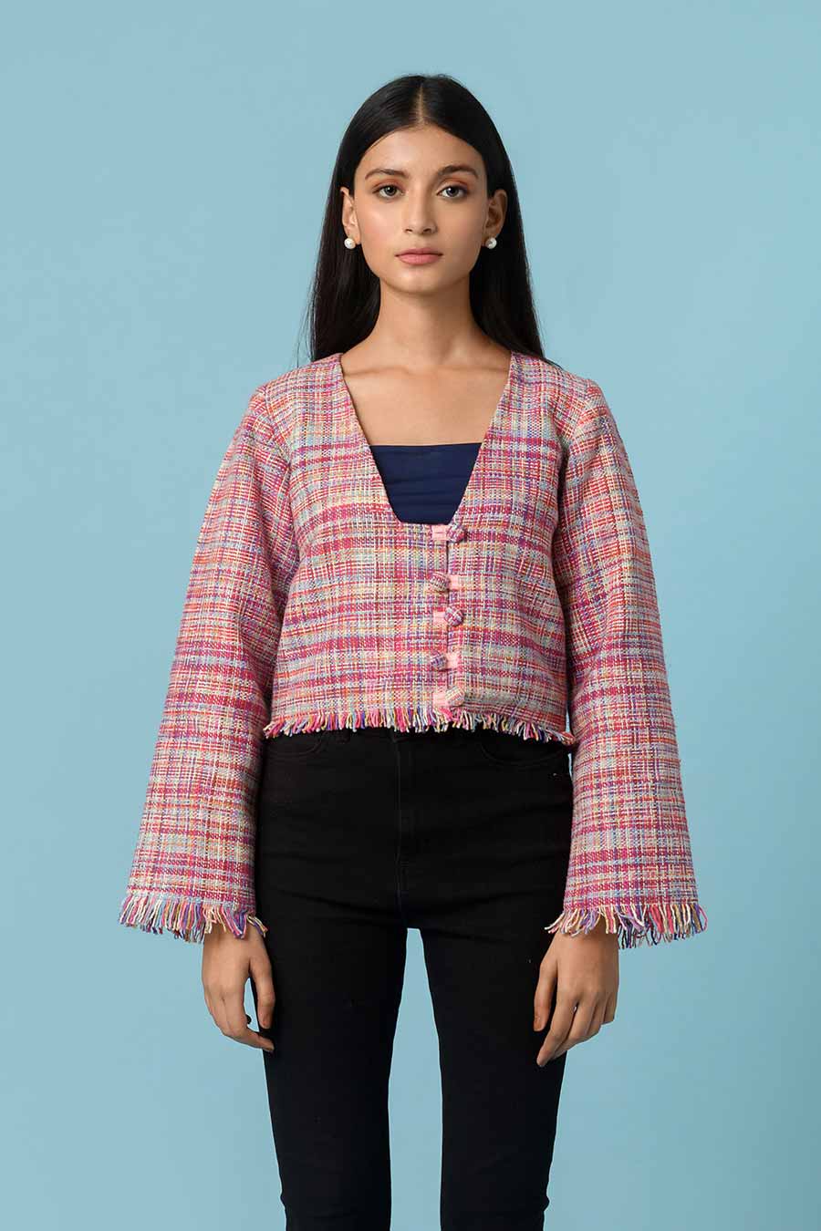 Bianca Pink Handwoven Fringed Jacket