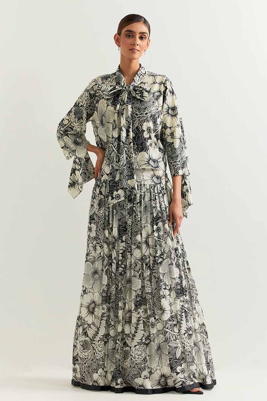 Black & White Printed Shirt & Skirt Co-Ord Set