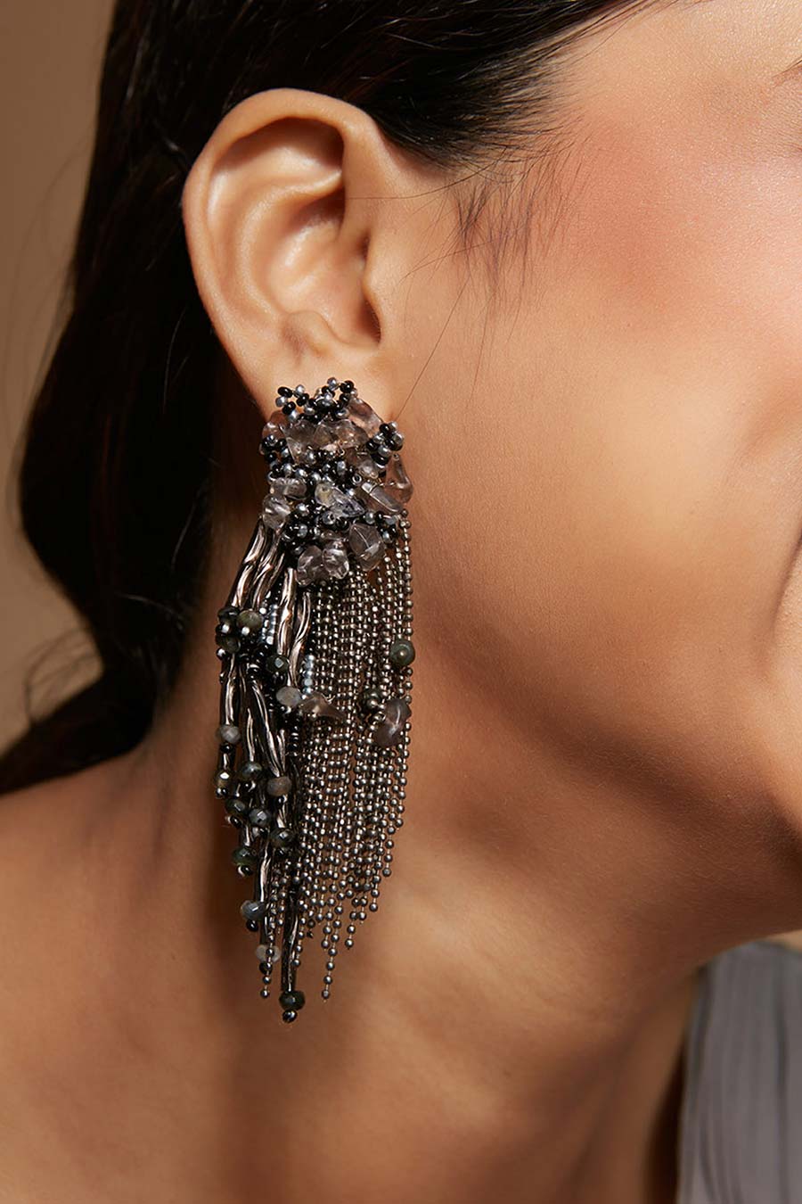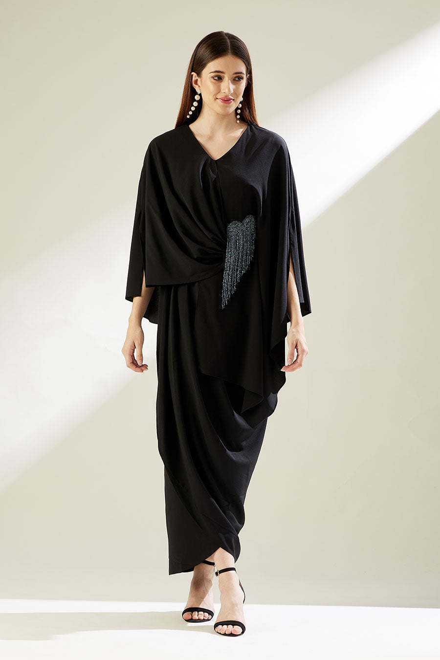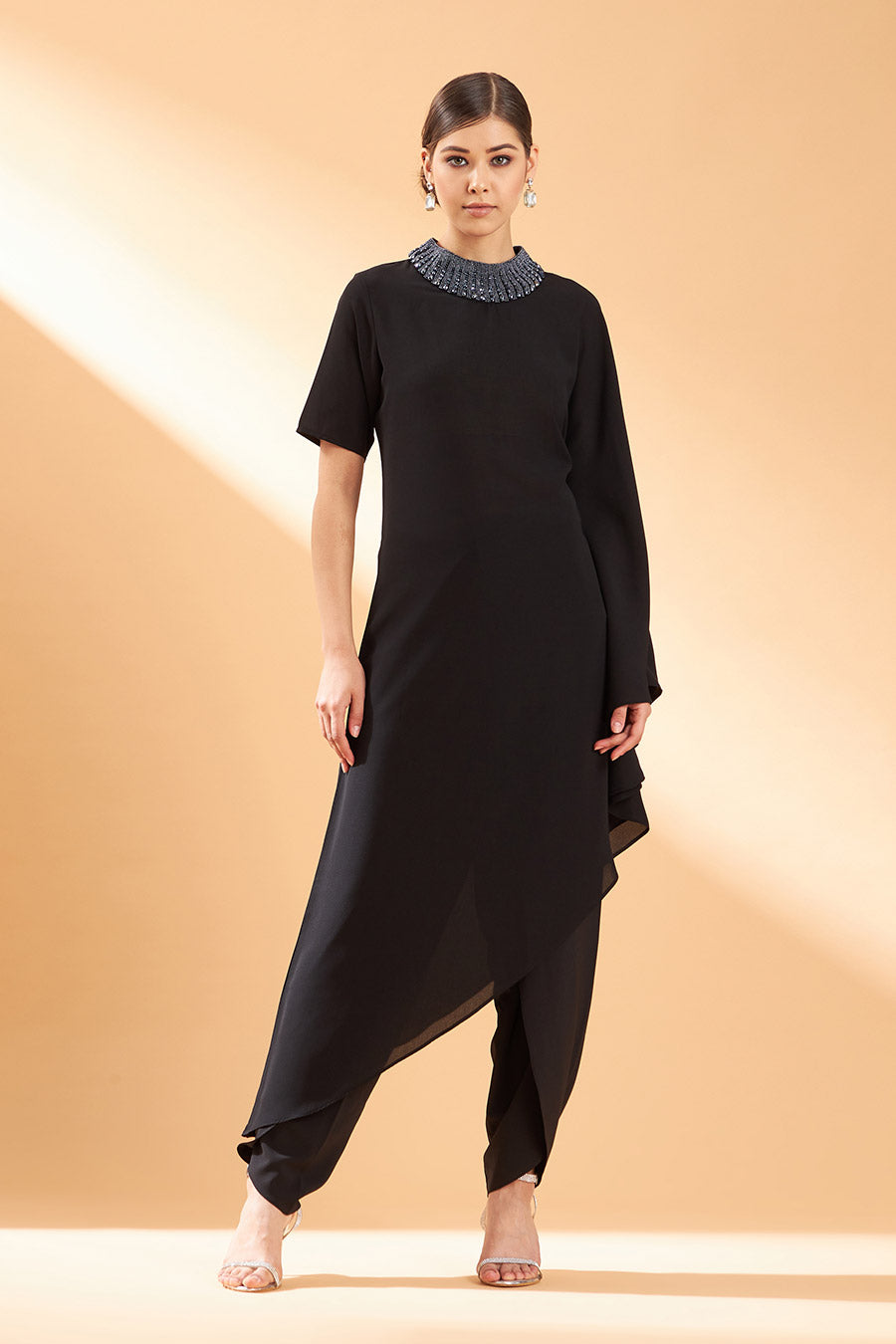 Black Crystal Embellished Drape Tunic Co-Ord Set