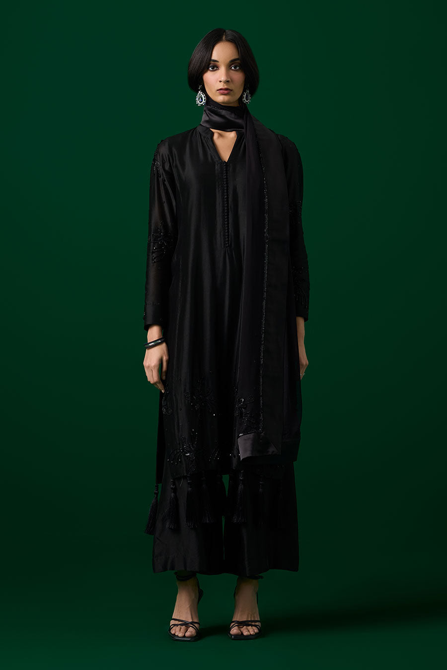 Black Crystal Flower Kaftan Top & Dhoti Pant Set