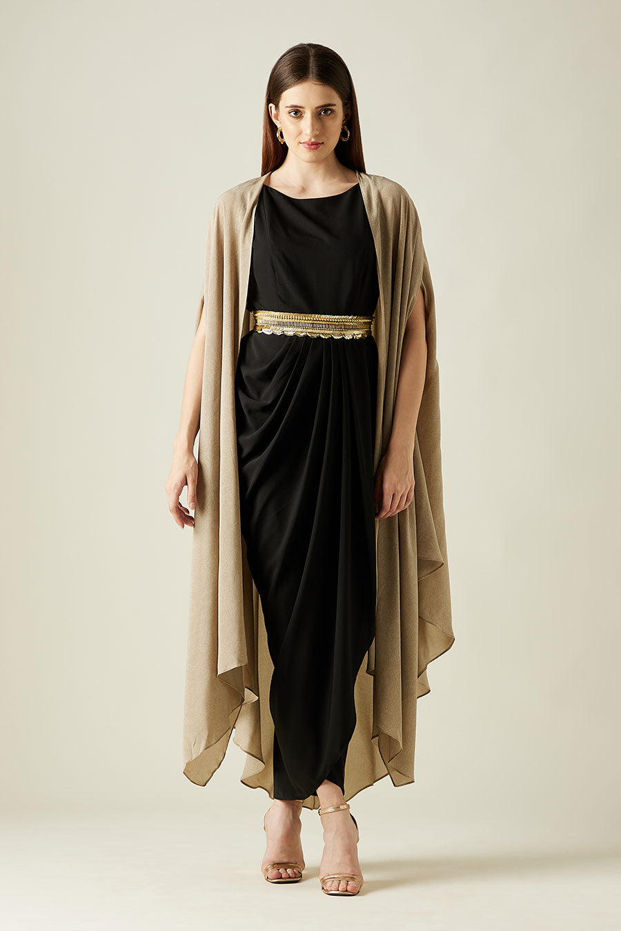 Black Dapper Embroidered Gown & Short Chic Jacket Set