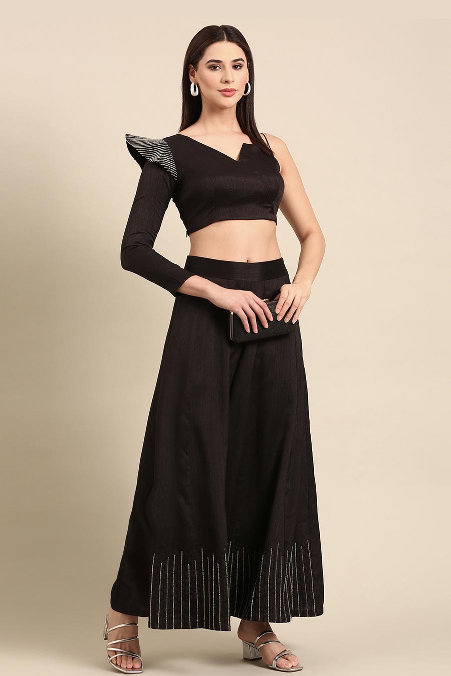 Black Embroidered Asymmetric Top & Palazzo Pant Co-Ord Set
