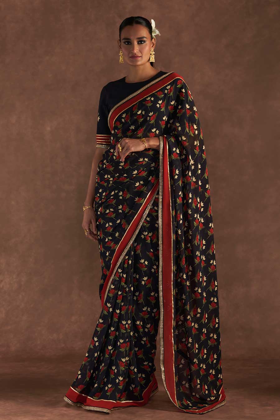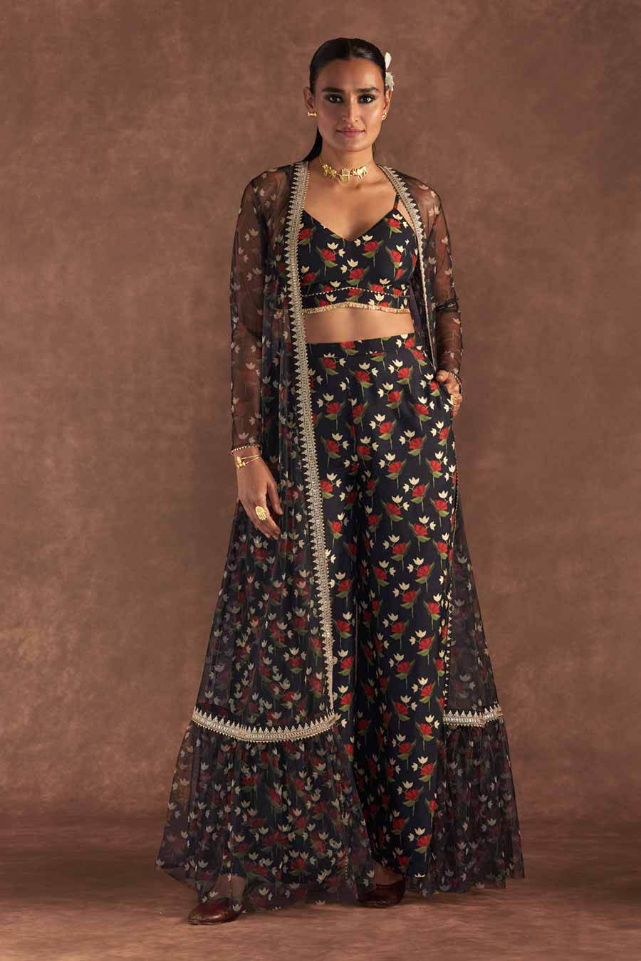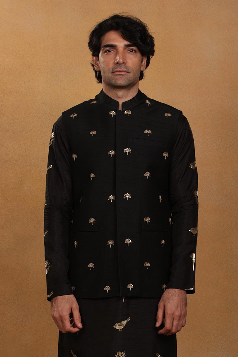 Black Jacquard Traveller's Palm Printed Kurta Set