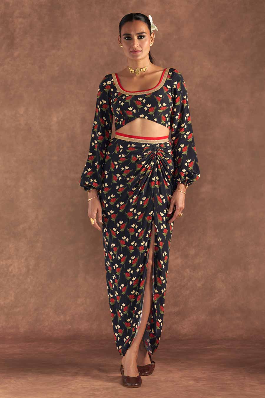 Black Jacket & Drape Skirt Co-ord Set (Set of 2)