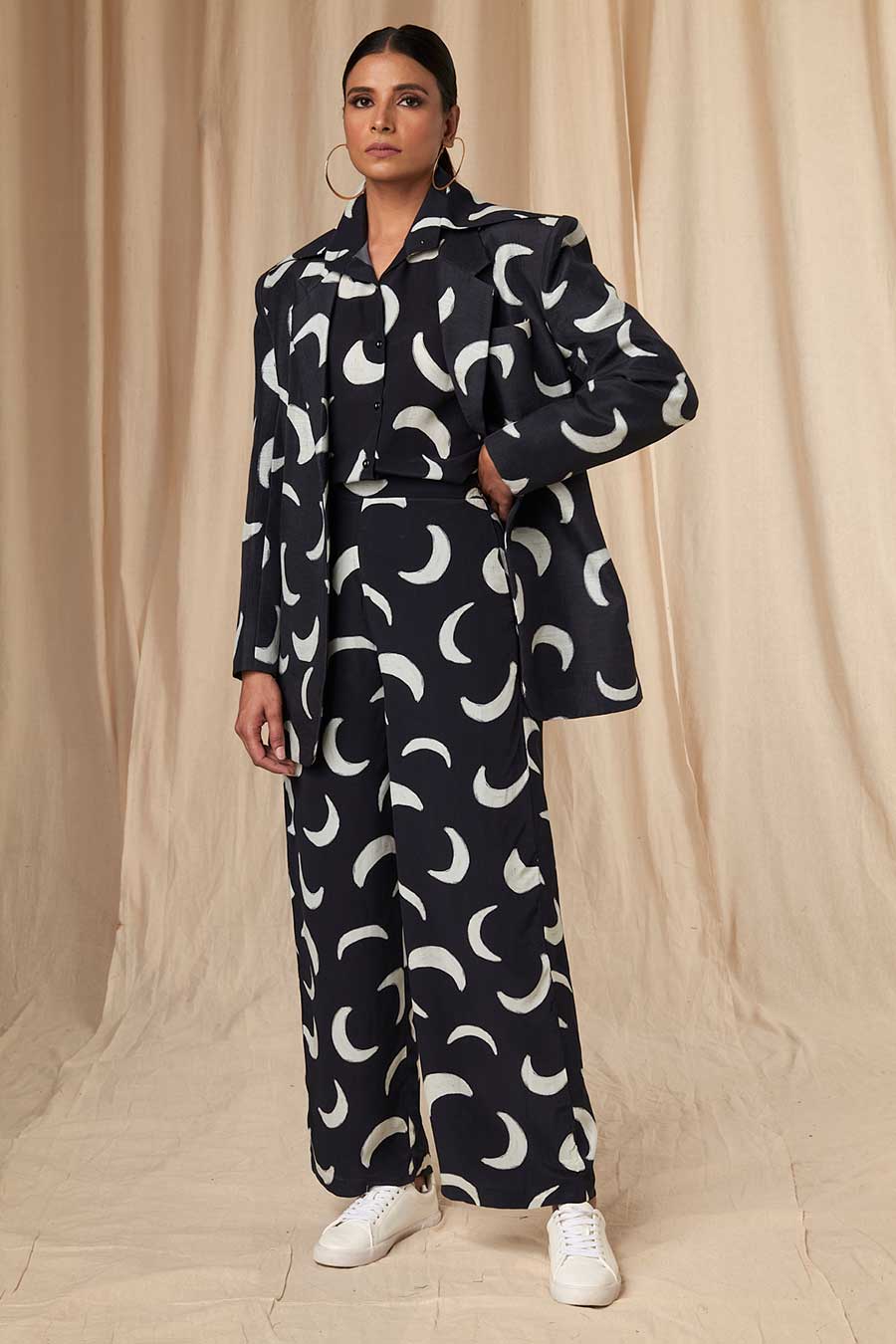Black Mooncrest Shirt Pants & Blazer Set (3Pc)