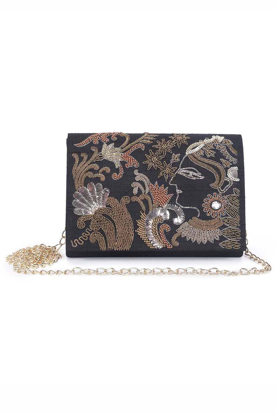 Black Metallic Zari Ethnic Weave Fine Wool Stole