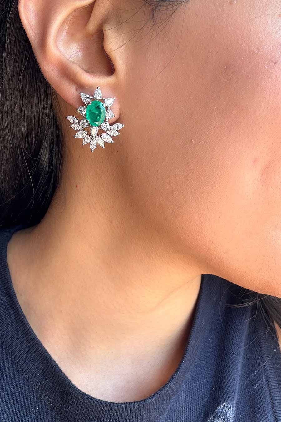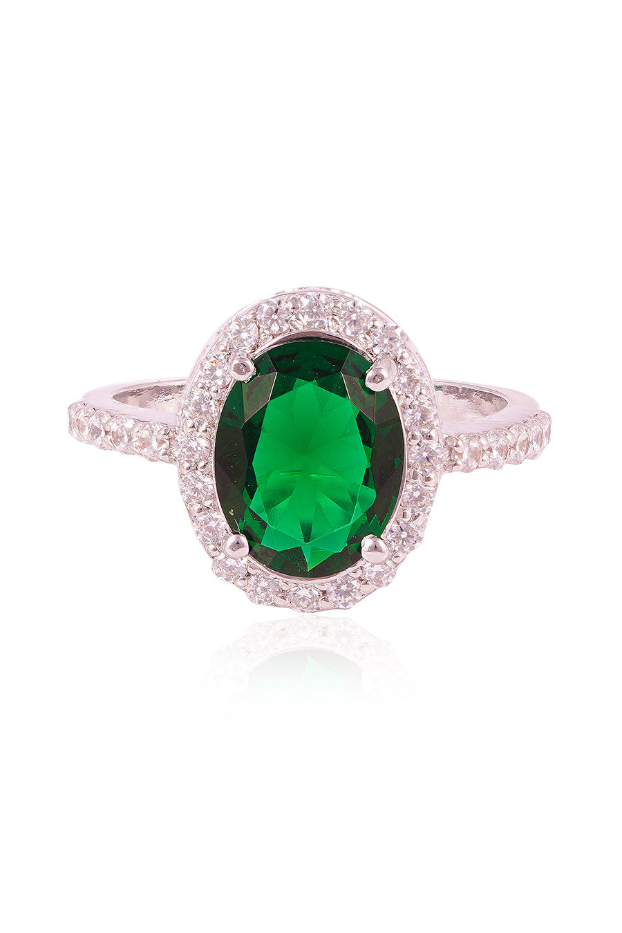 92.5 Sterling Silver Ida Green Oval Halo Ring