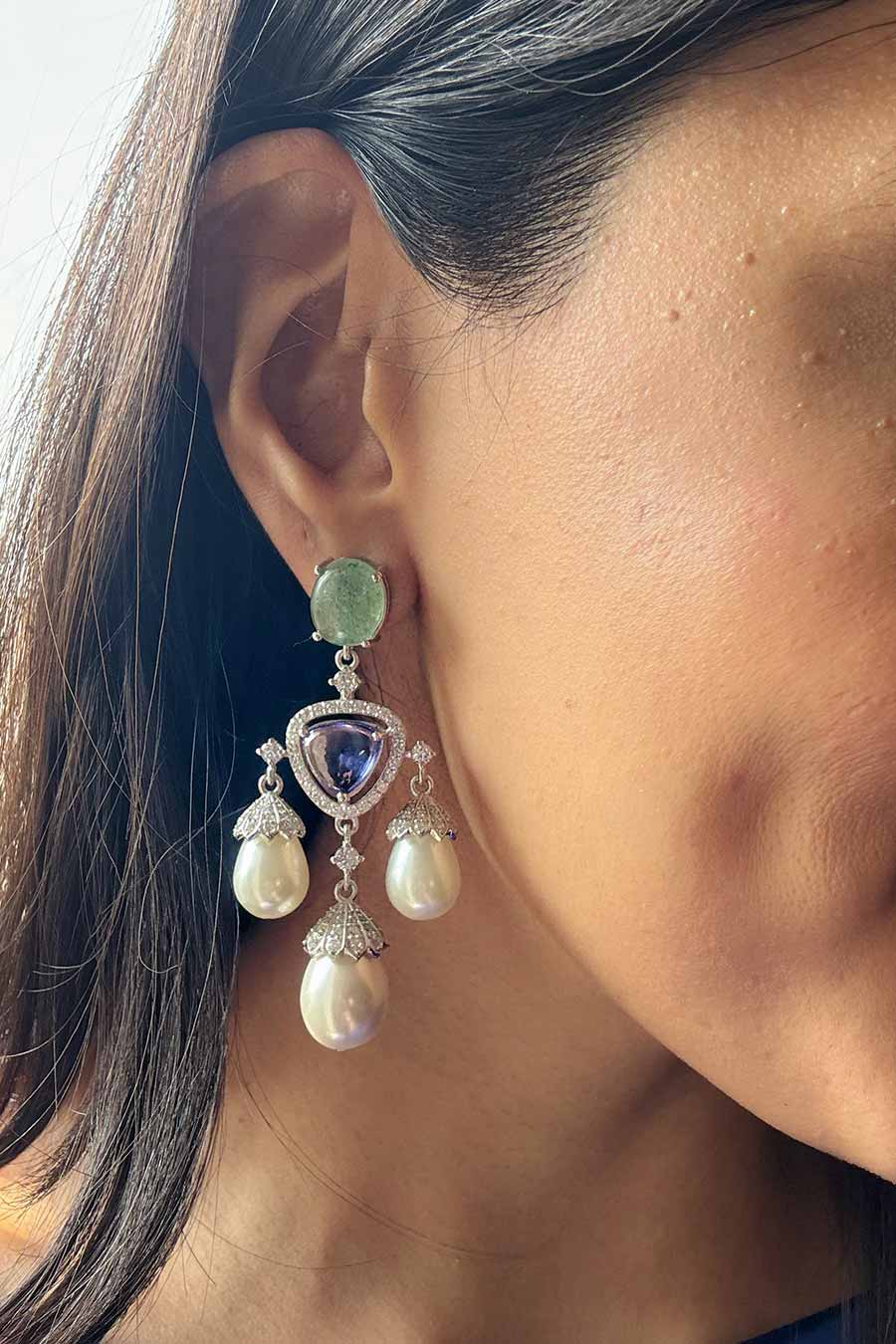 92.5 Sterling Silver Gulzar Pearl Drop Earrings