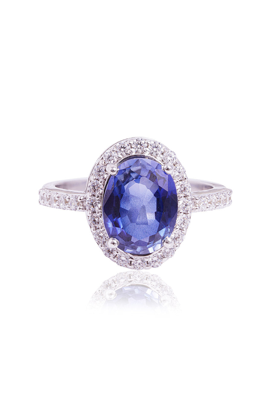 92.5 Sterling Silver Ida Blue Oval Halo Ring