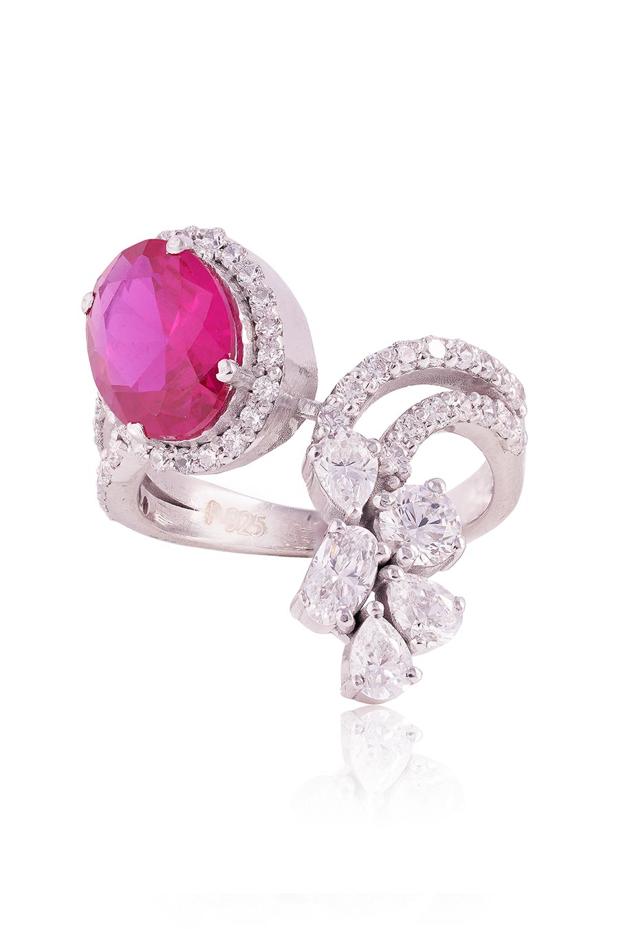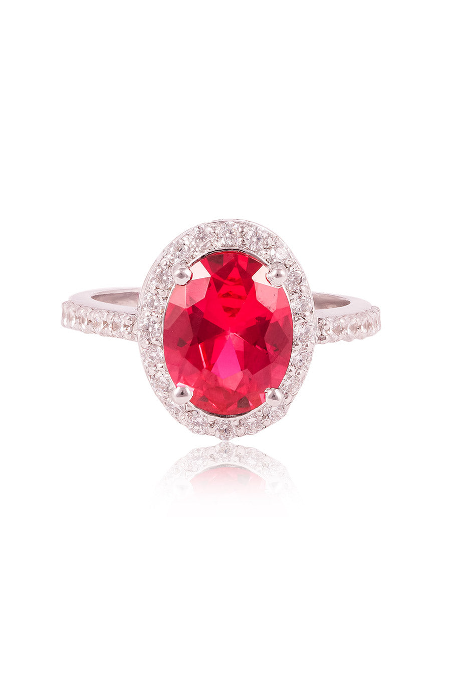 92.5 Sterling Silver Ida Red Oval Halo Ring