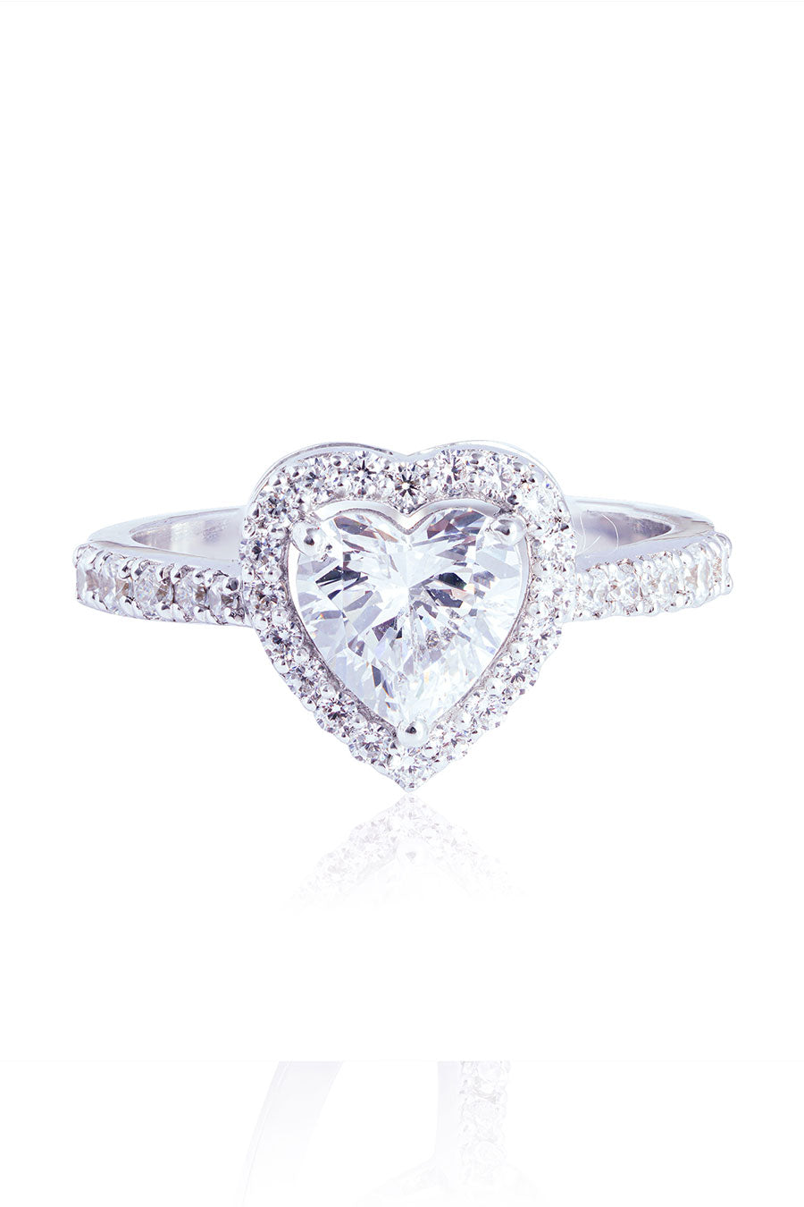 92.5 Sterling Silver Heart Halo Solitaire Ring