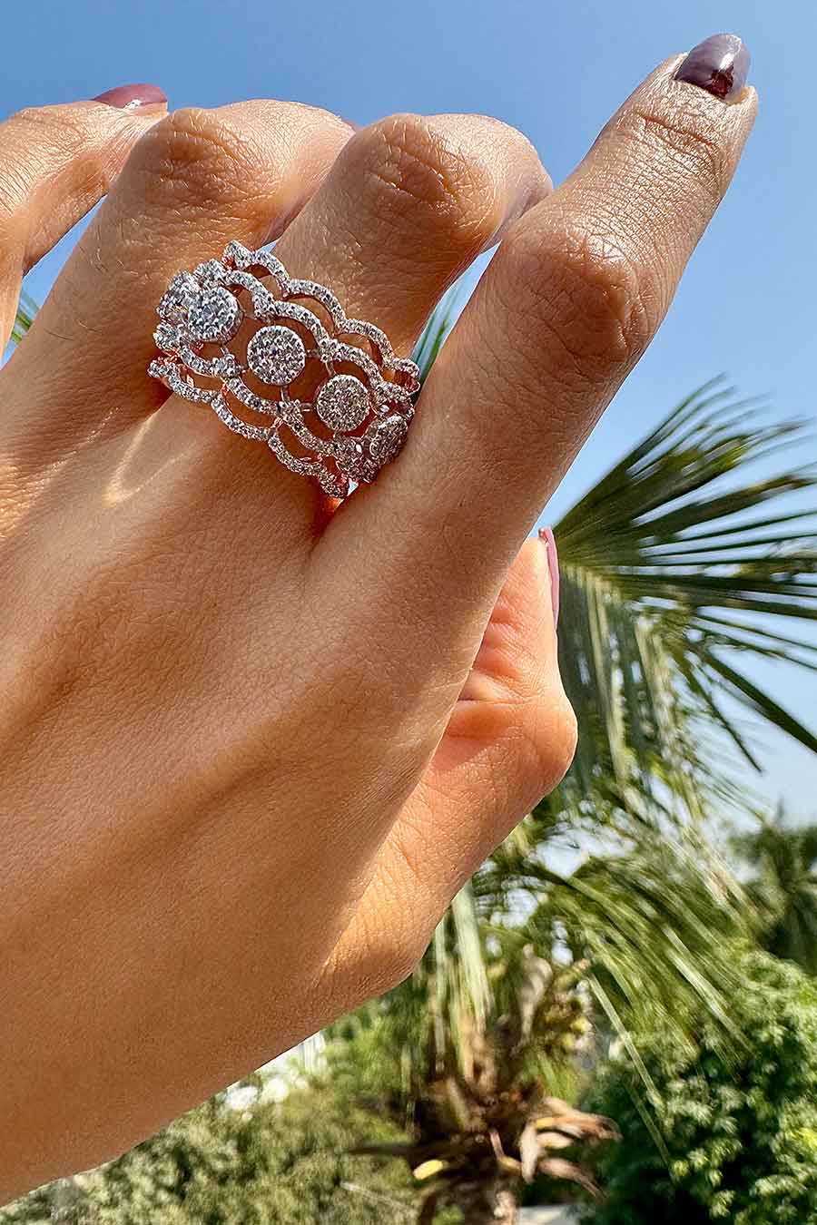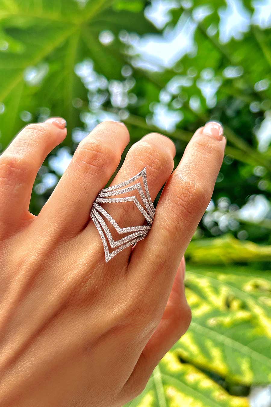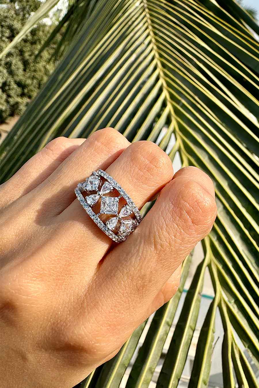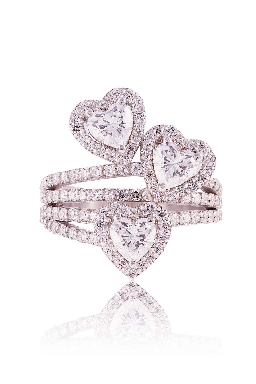 92.5 Sterling Silver Heart Halo Symphony Ring