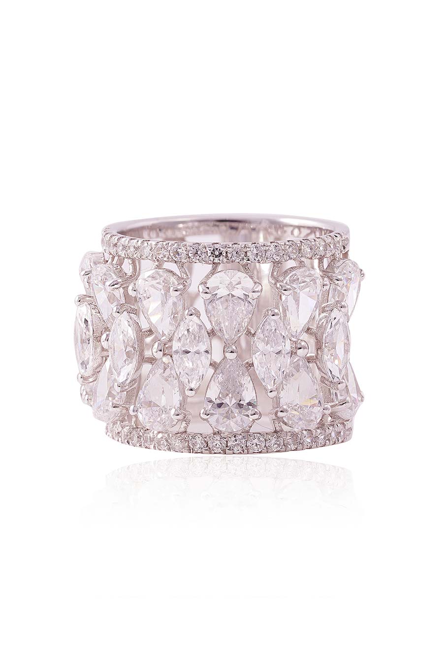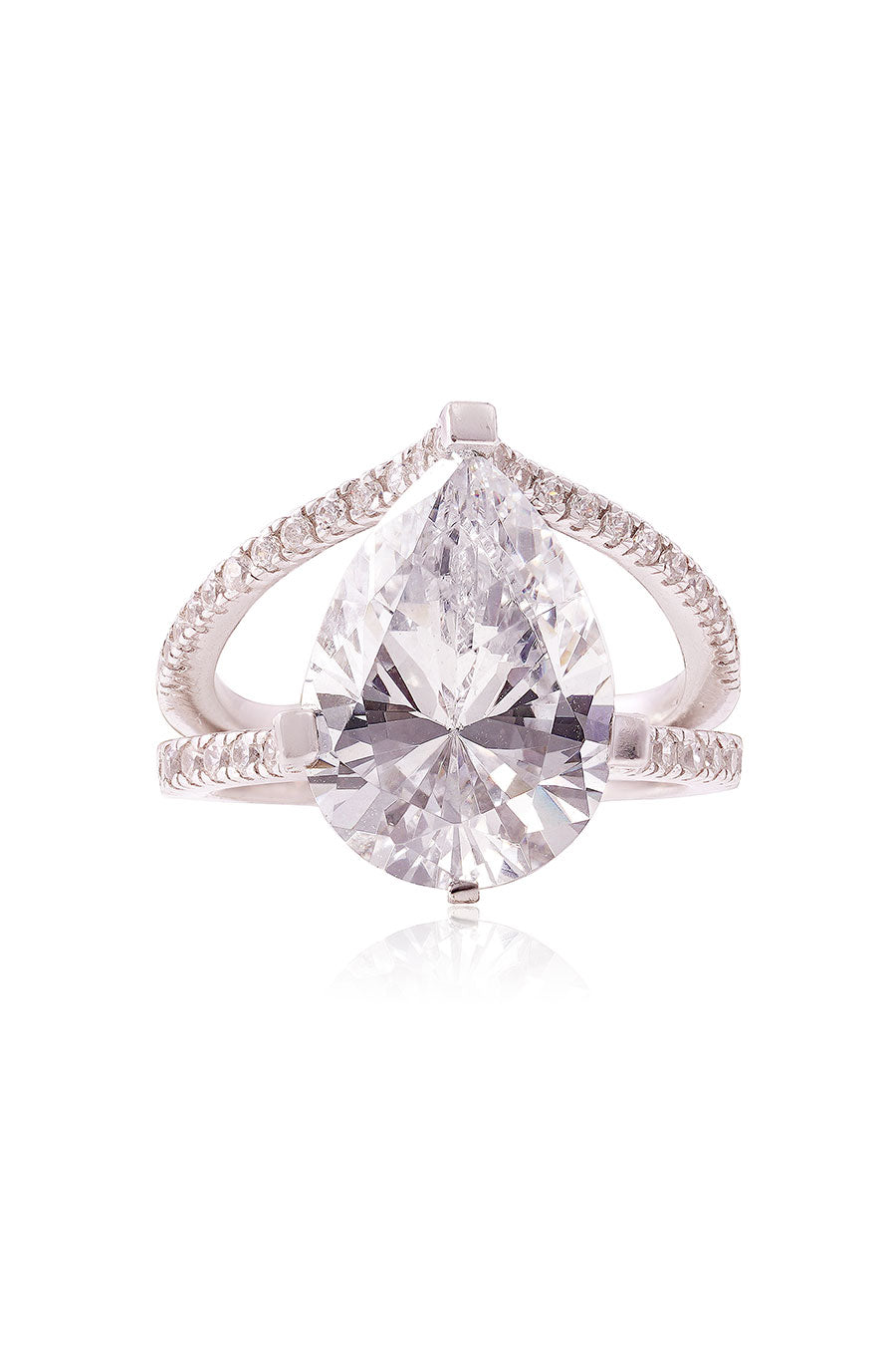 92.5 Sterling Silver Luminous Pear Sparkler Ring