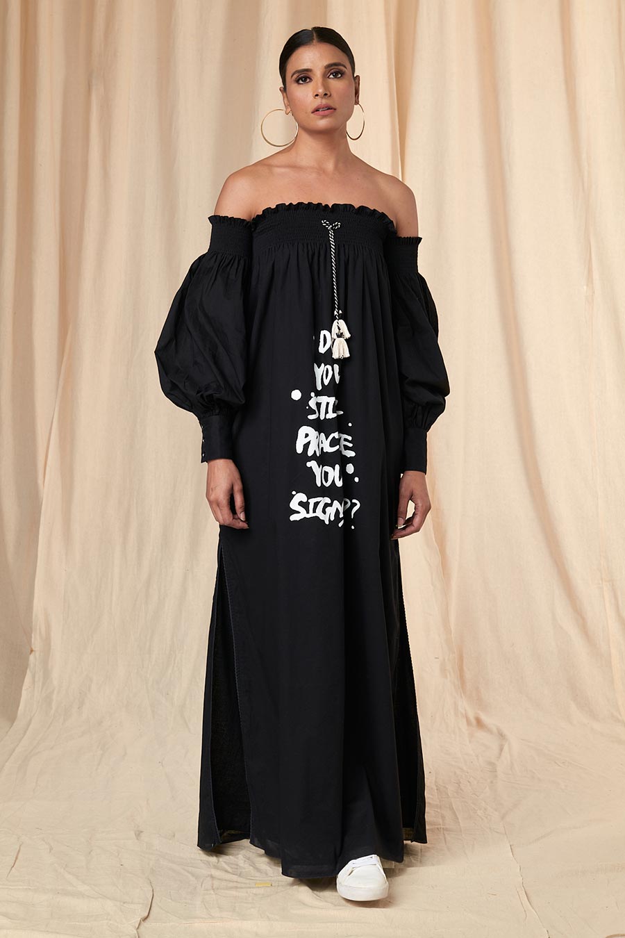 Black Smocking Kurta with Pants & Multicolour Dupatta Set