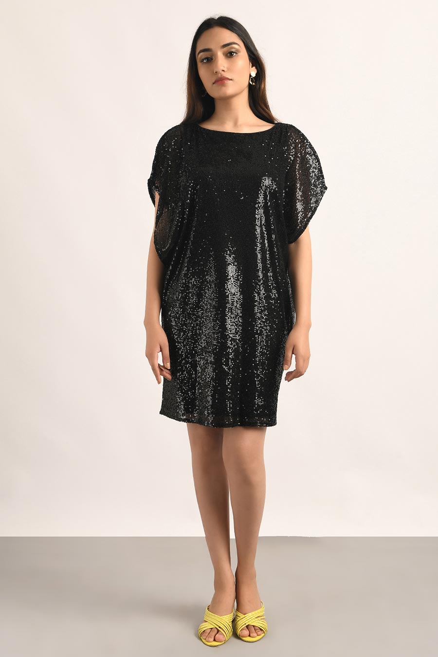 Black Sequins Jaal Sheer Kaftan & Pant Set