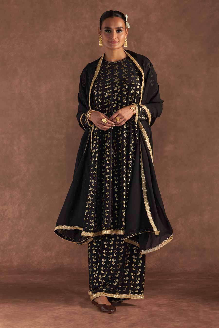 Black Tantalizing Embroidered Bralette & Jacket with Pant Set