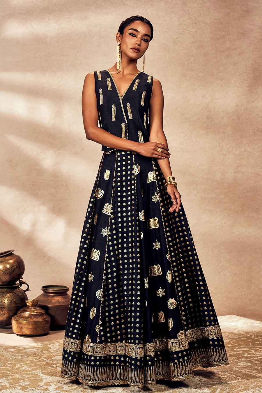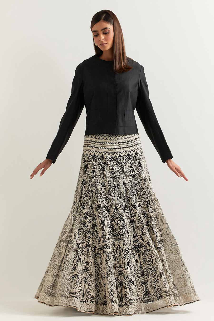 Black Trinkets Embellished Koti & Lehenga Set