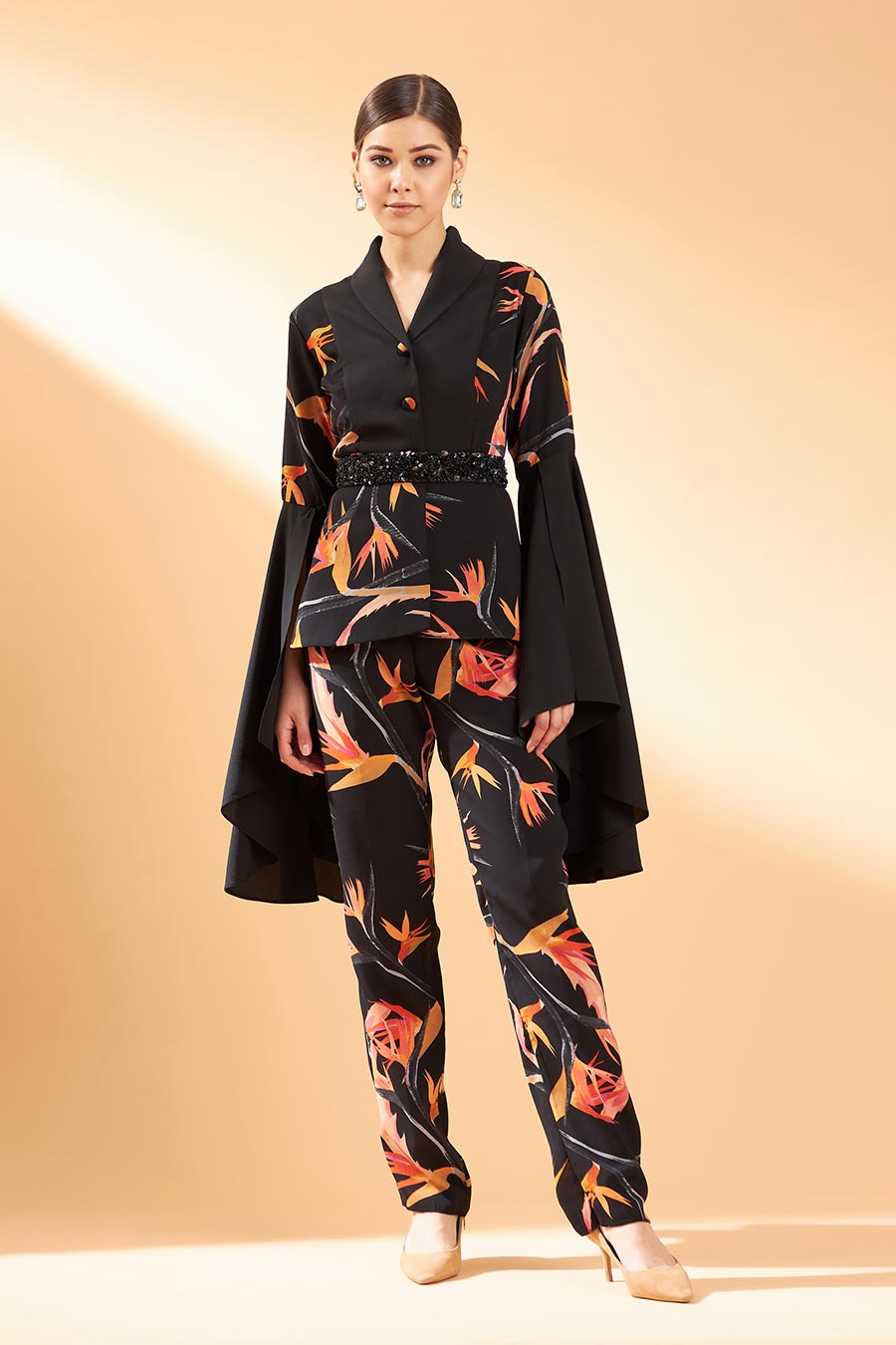 Black Velora Printed Blazer & Pant Co-Ord Set