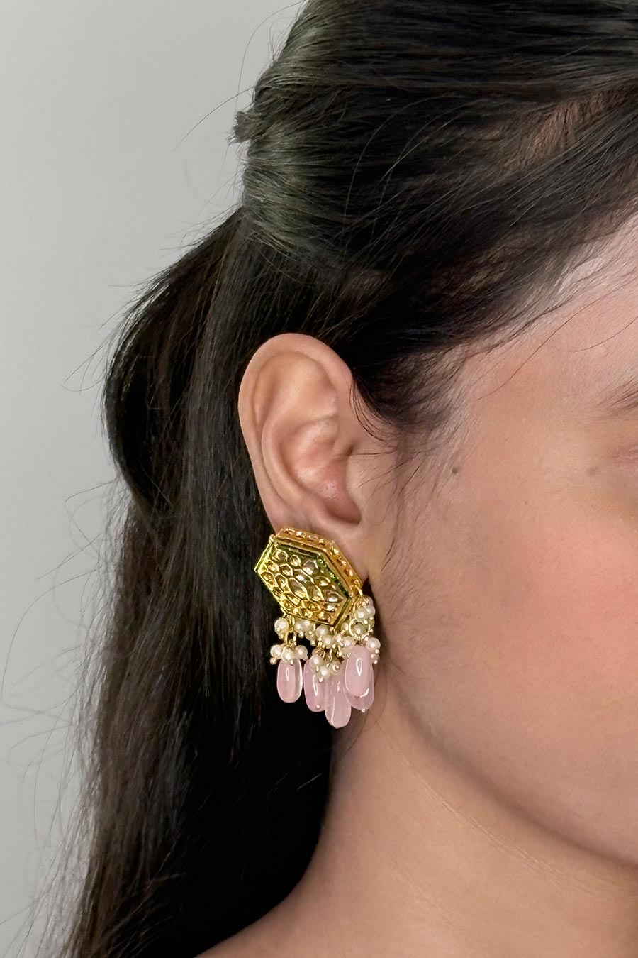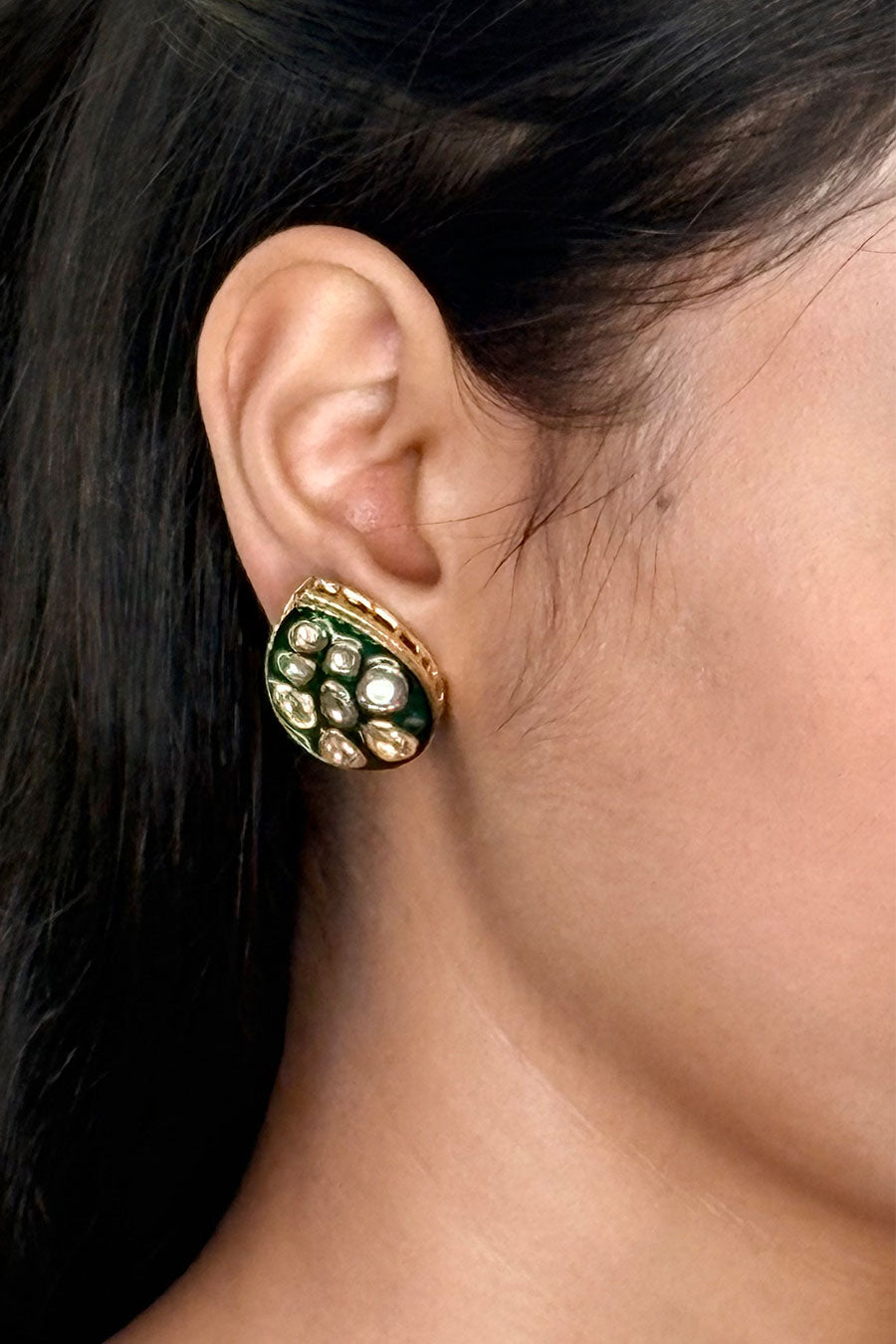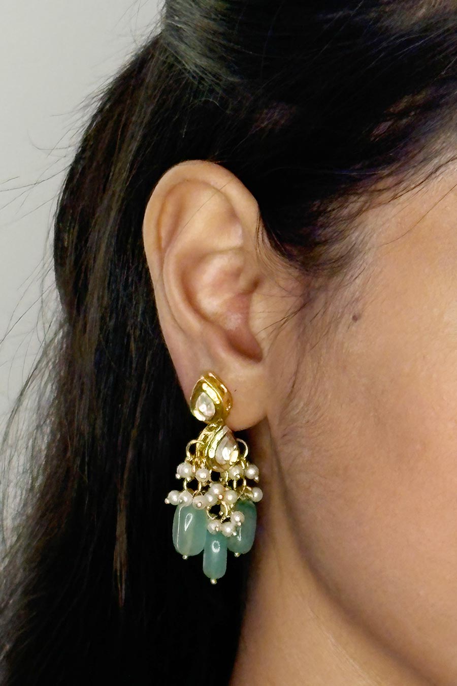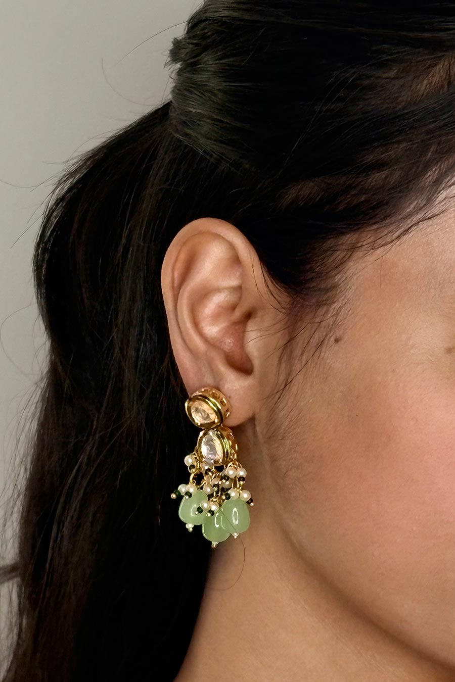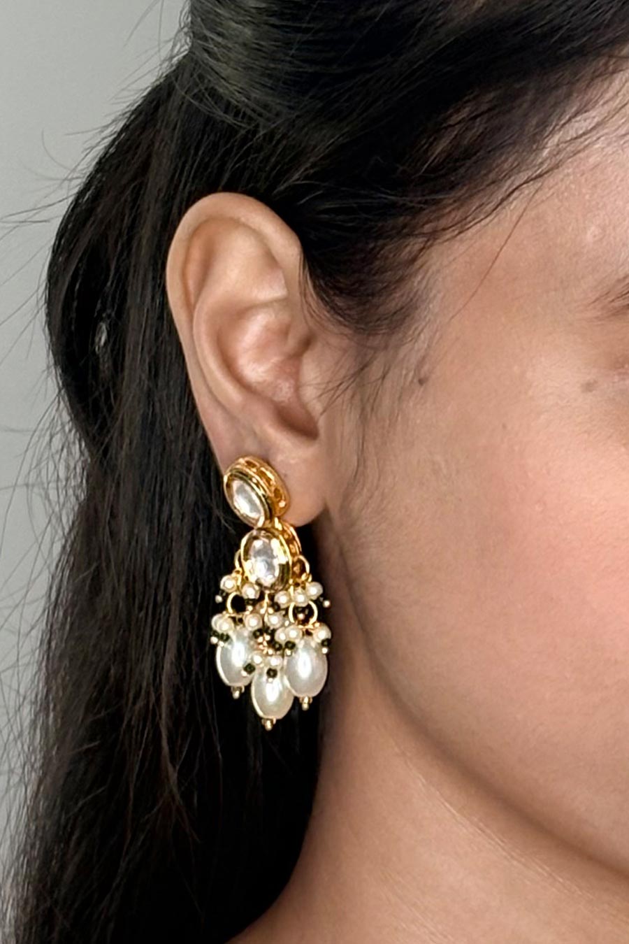 Kundan Drop Jhumki with Pearl & Emerald Tassels