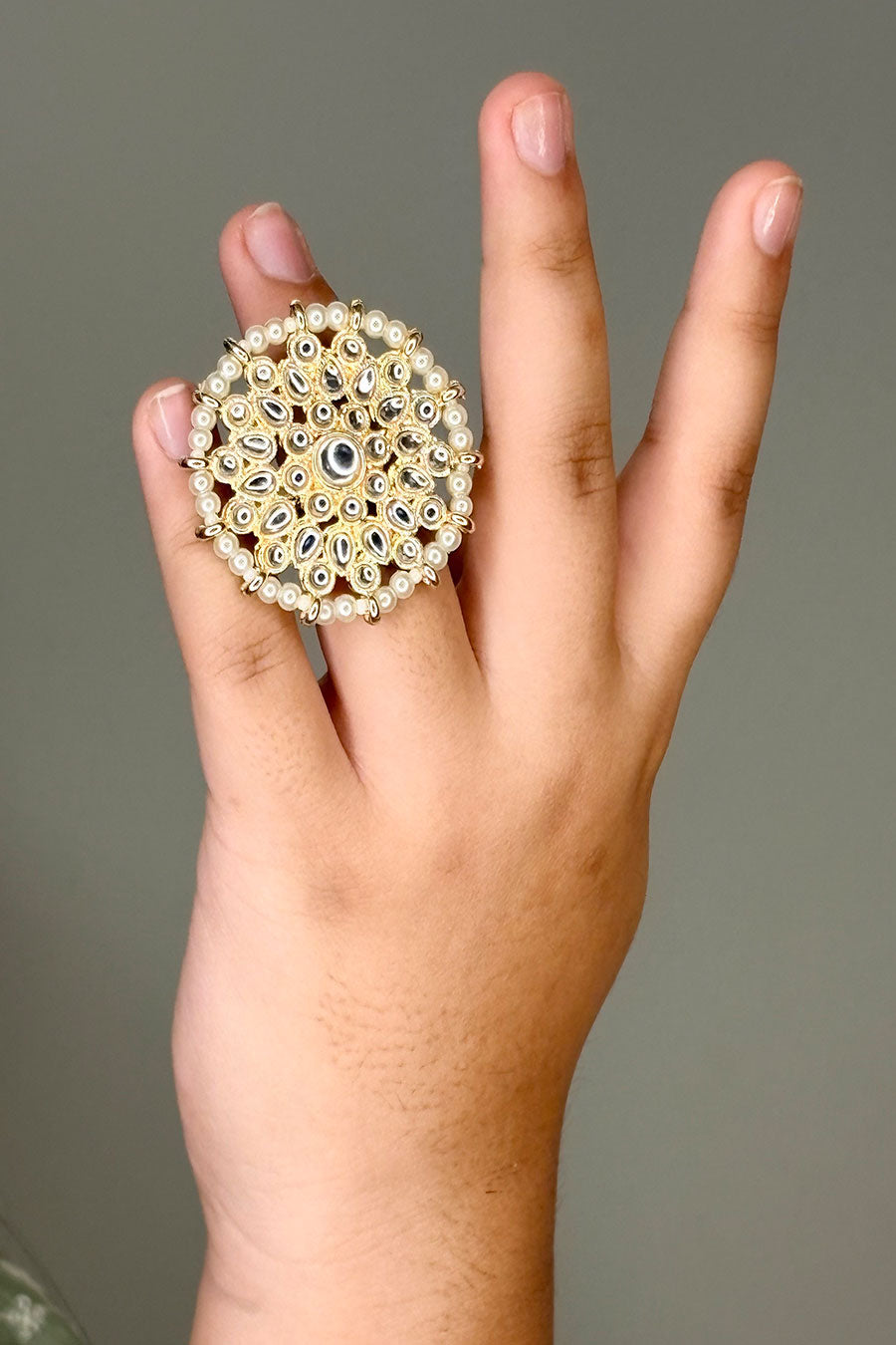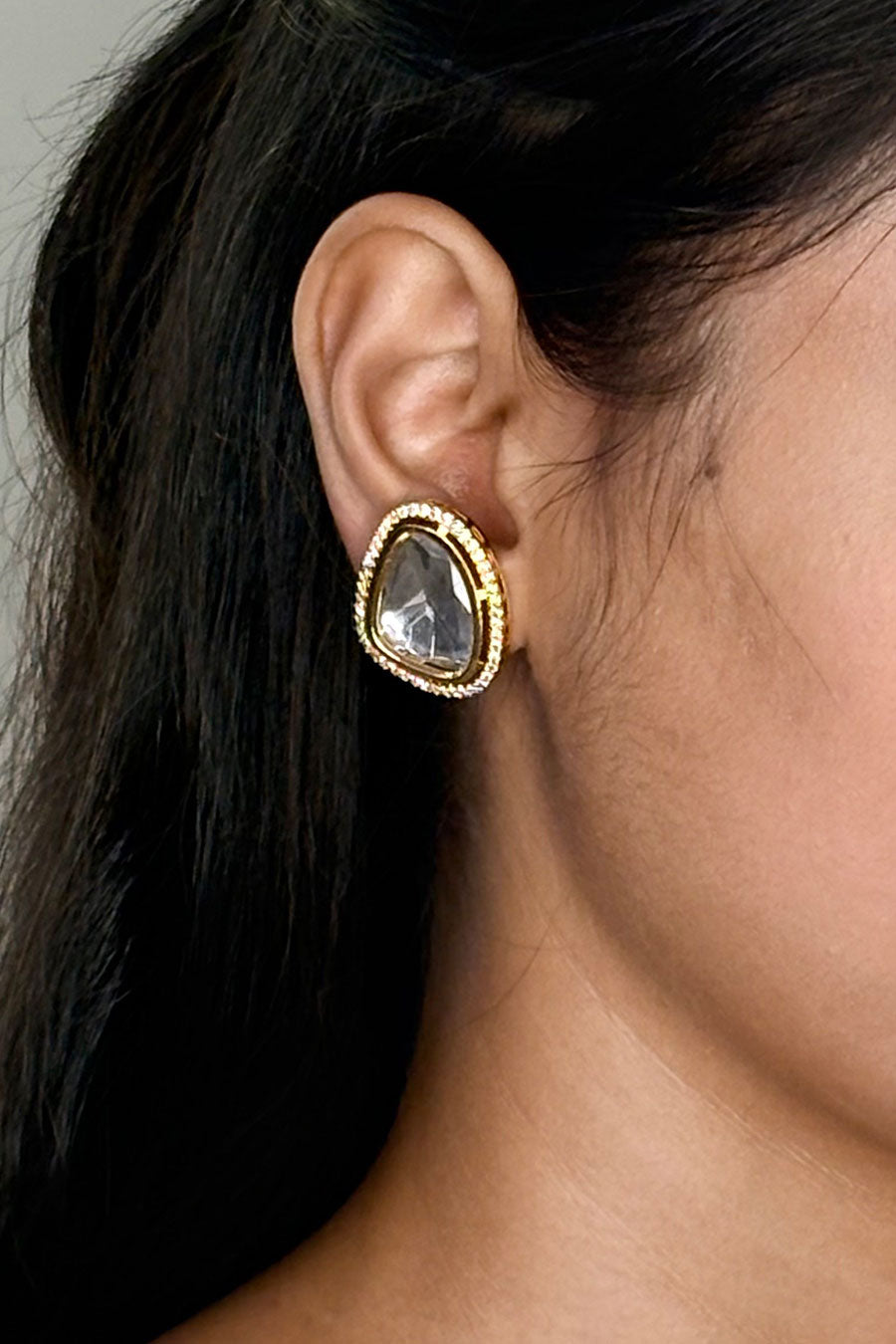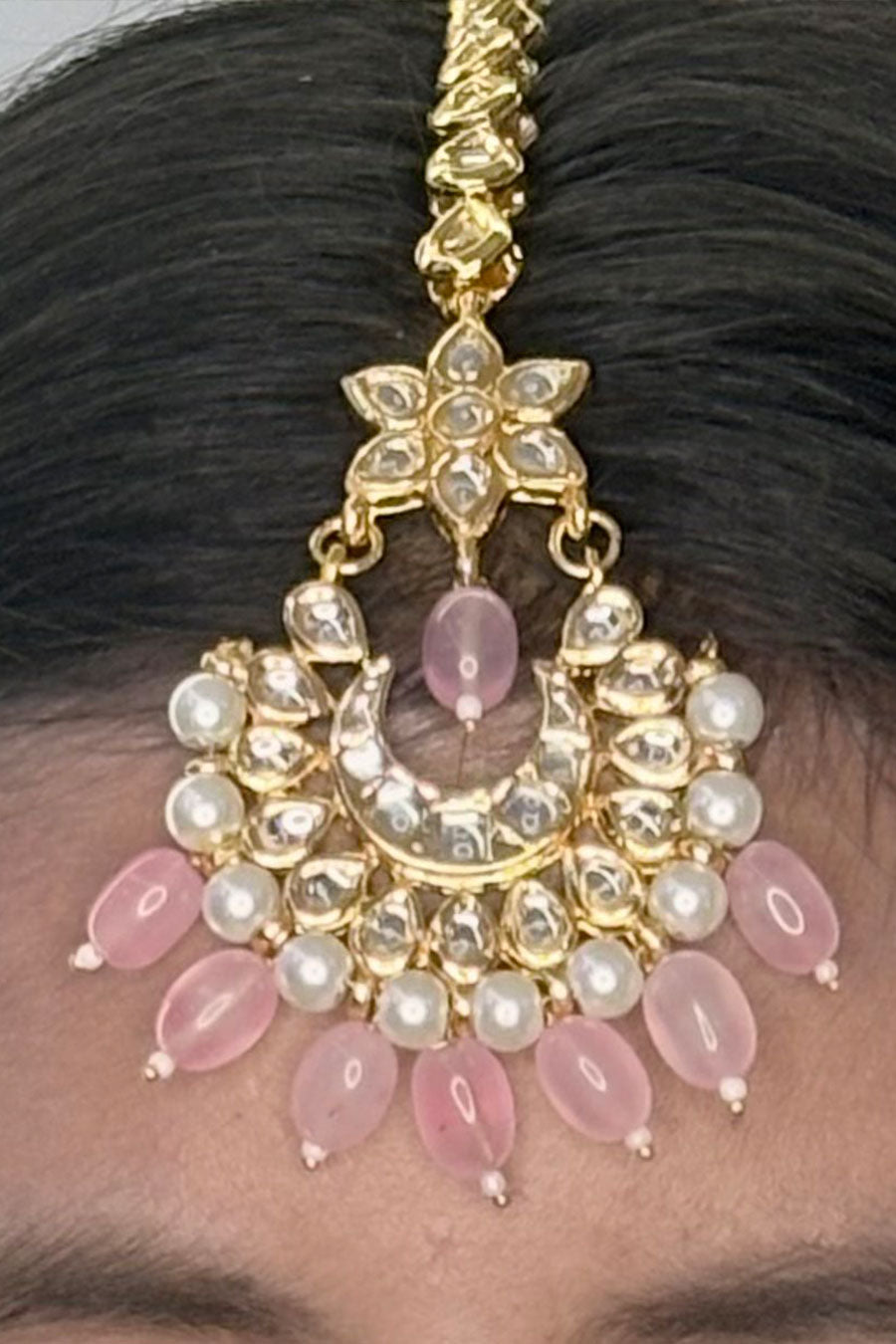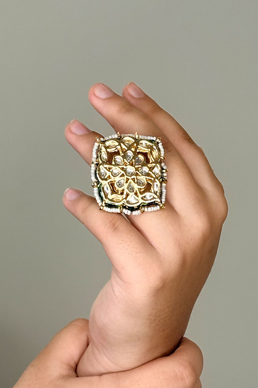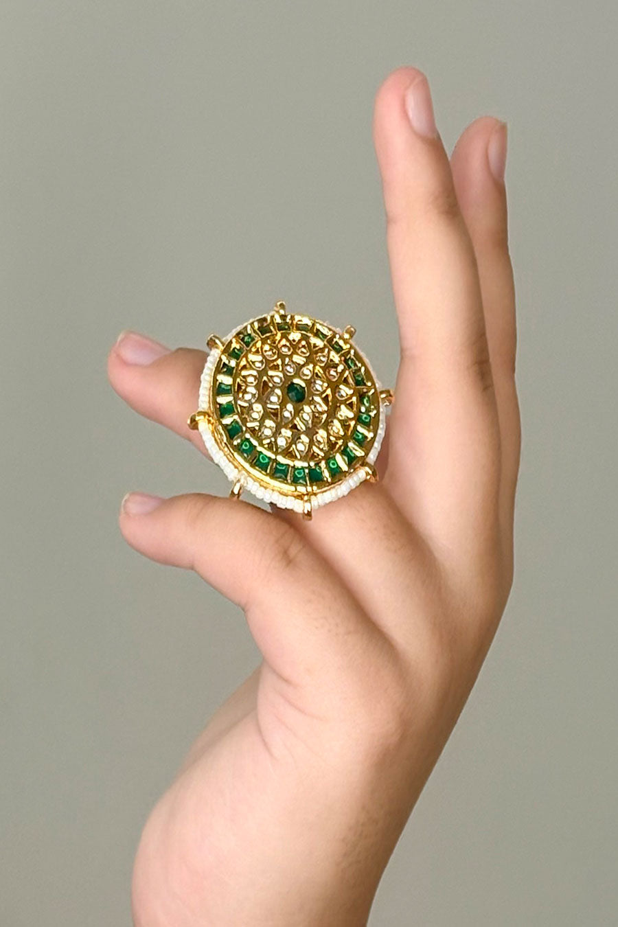 Kundan Drop Jhumki with Pearl & Emerald Tassels