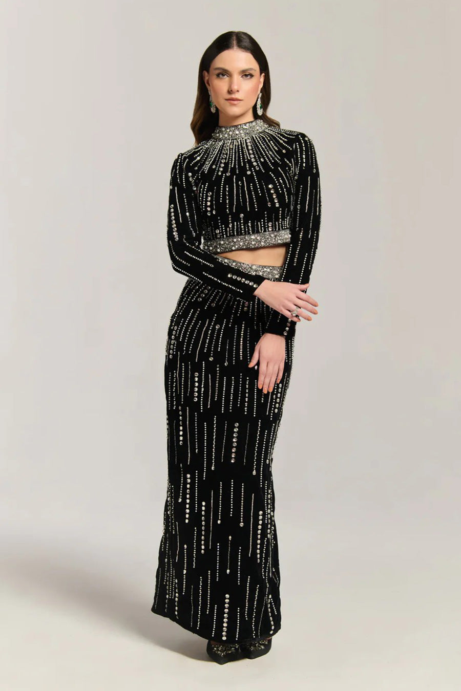 Black Velvet Night Embellished Co-Ord Set