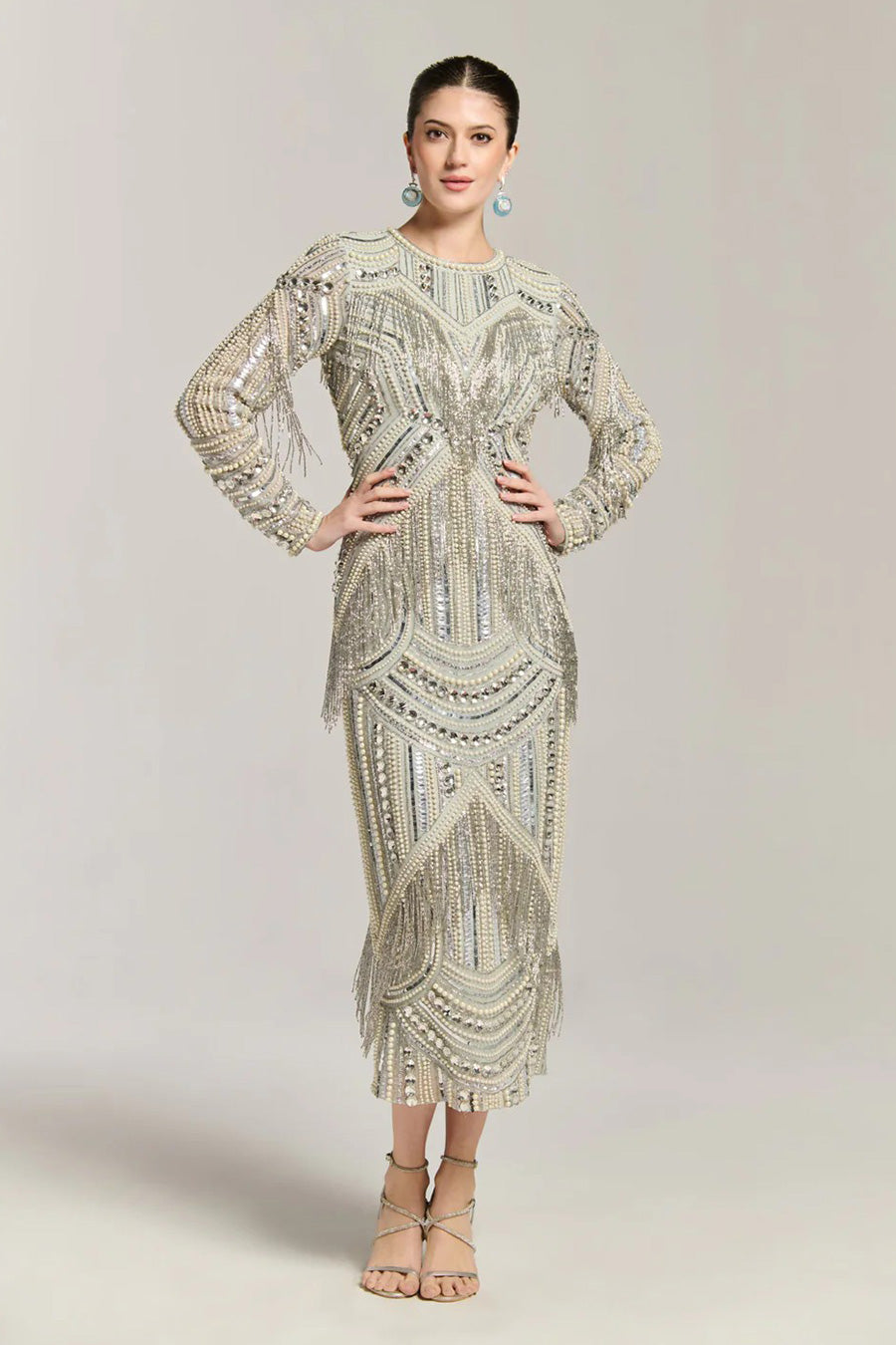 Silver Elegance Fringe Embellished Dress