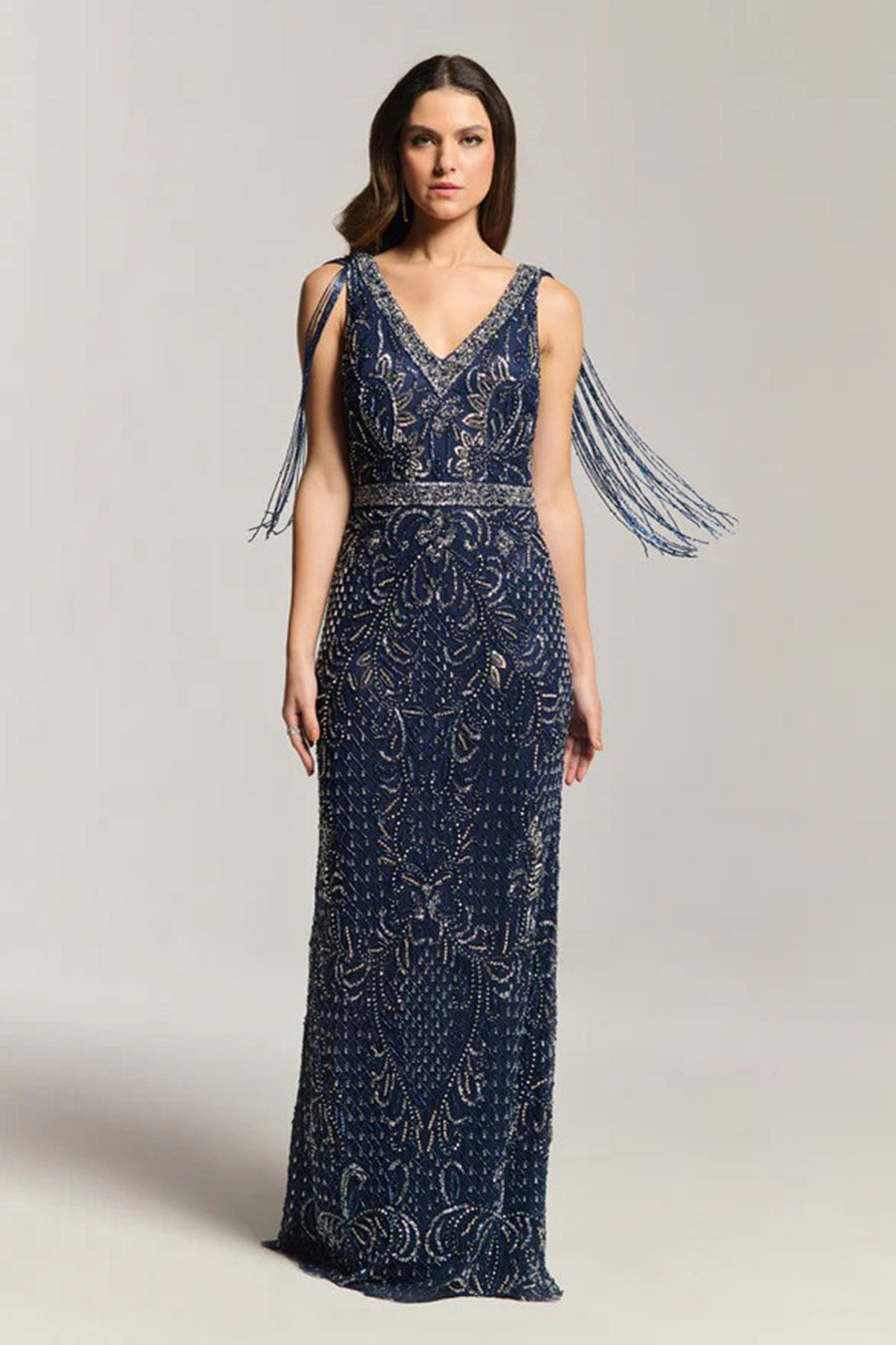 Beaded Fringe Embellished Evening Gown